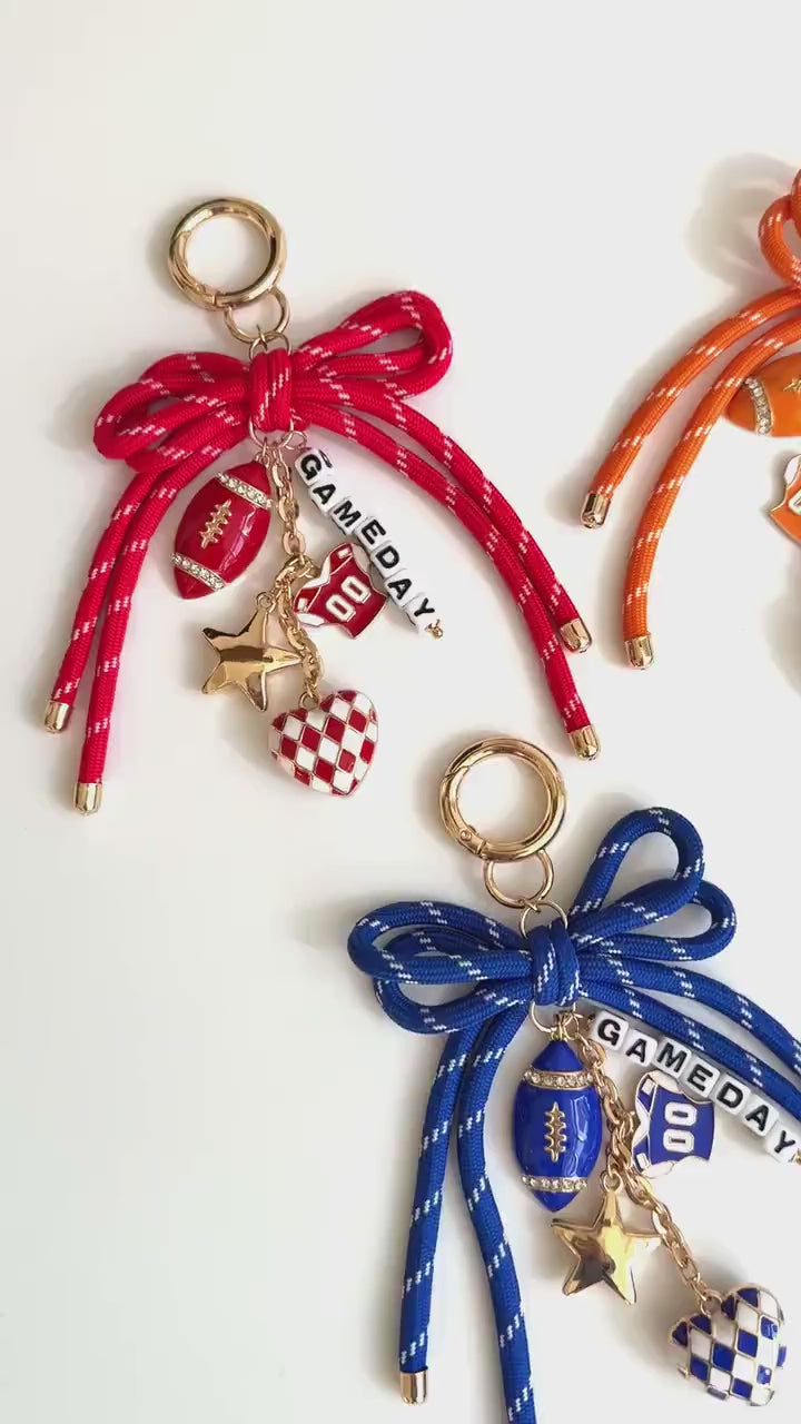 Celebrate your team spirit with this Game Day keychain featuring football-inspired charms, a decorative bow, and playful accents. A stylish and sporty accessory perfect for fans, bags, or keys, it adds personality to your everyday essentials. • Size : 6" L, 3.5" X 4.6"Liquid syntax error (snippets/product-attribute line 6): Expected end_of_string but found colon in "{{settings.product_attribute_text | replace: '[option]' : product_attribute_option }}" -