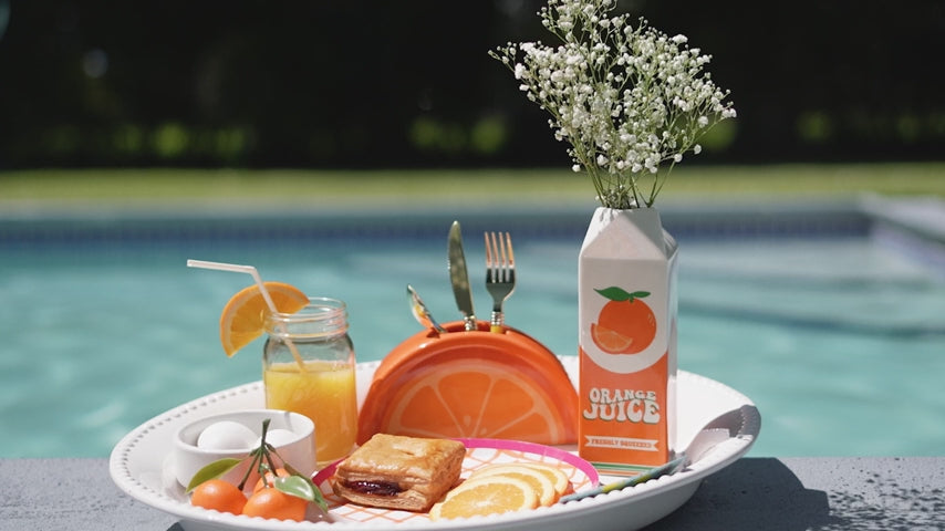 Set of 2 Orange Juice Fruit Slice Ceramic Vases