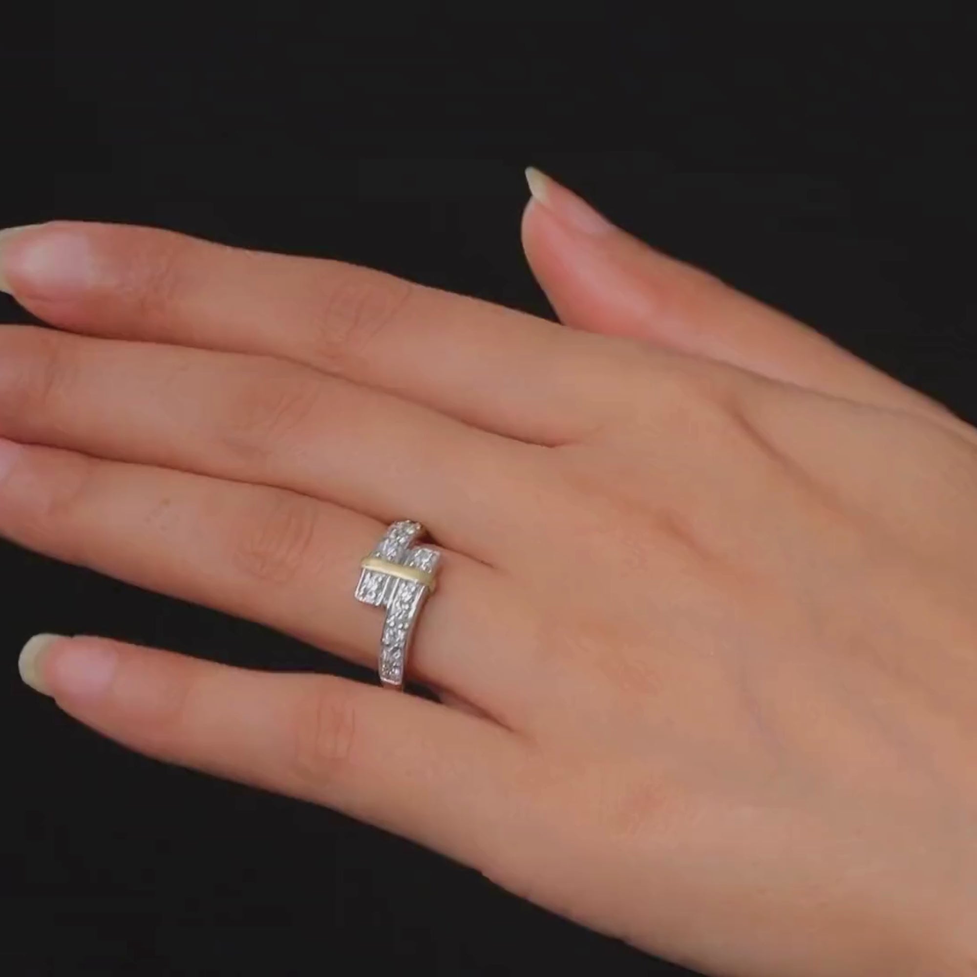 Lovingly Bound CZ Silver Gold Bypass Ring