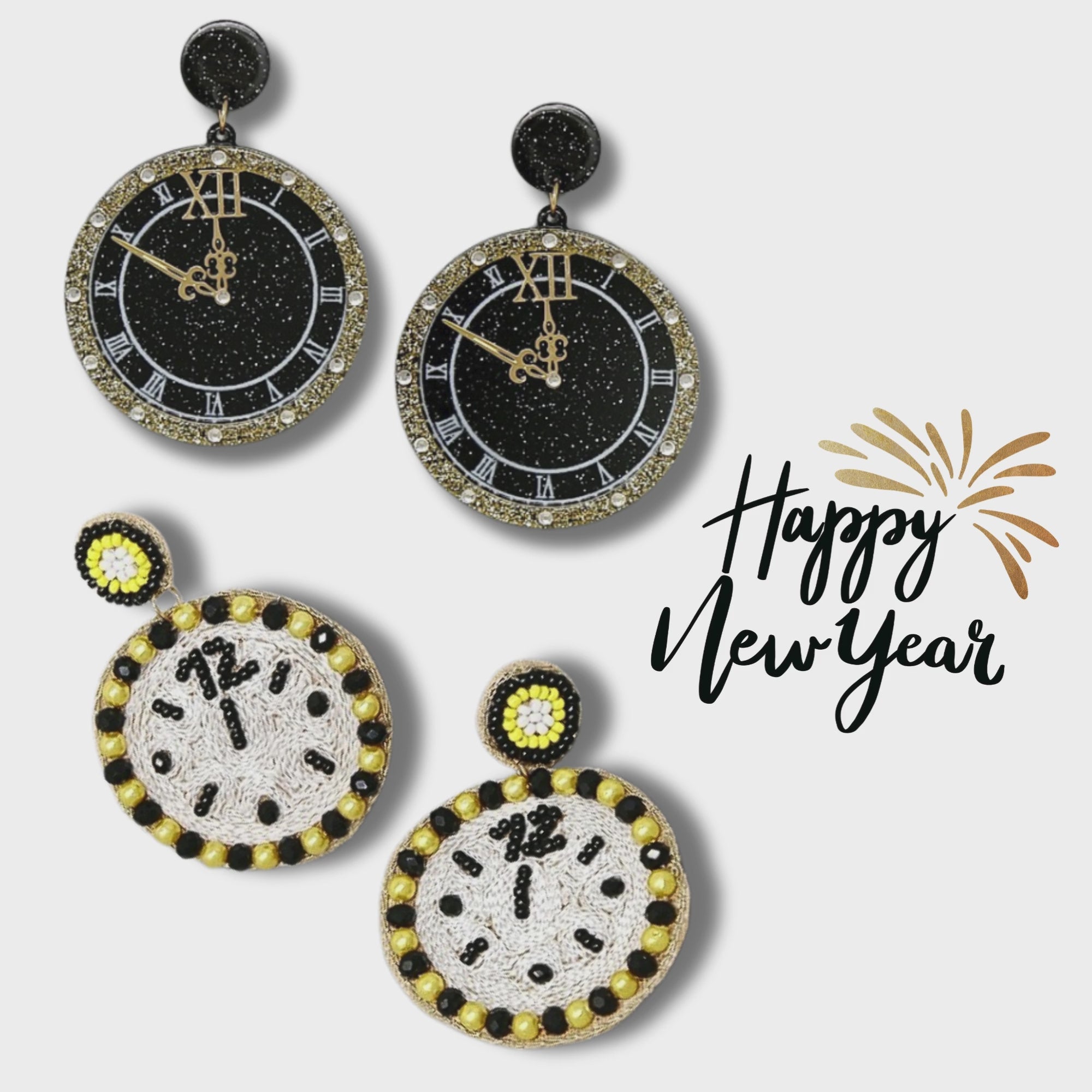 Happy New Years Eve Countdown Beaded Drop Earrings