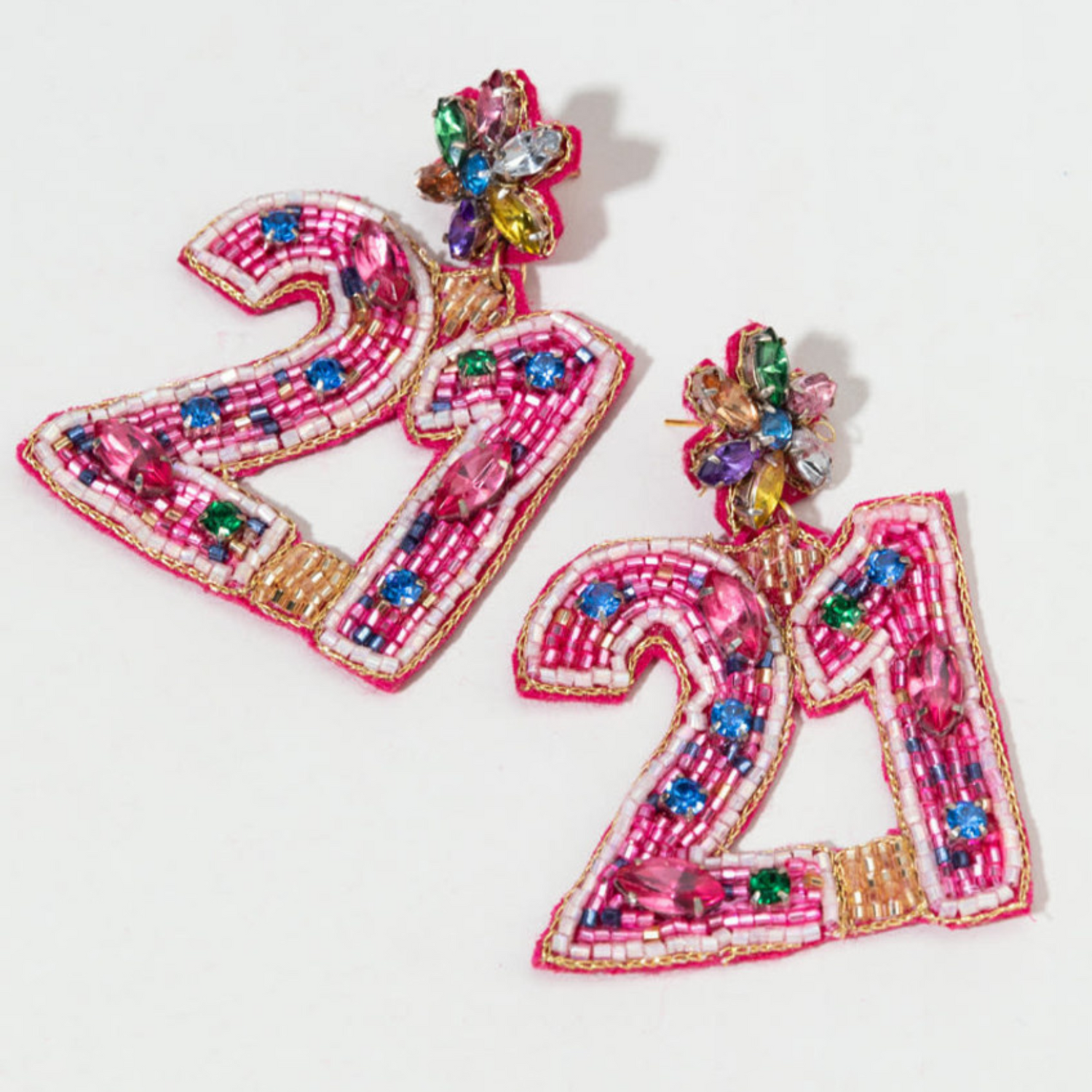 21ST BIRTHDAY Premium Bead & Crystal Celebration Earrings