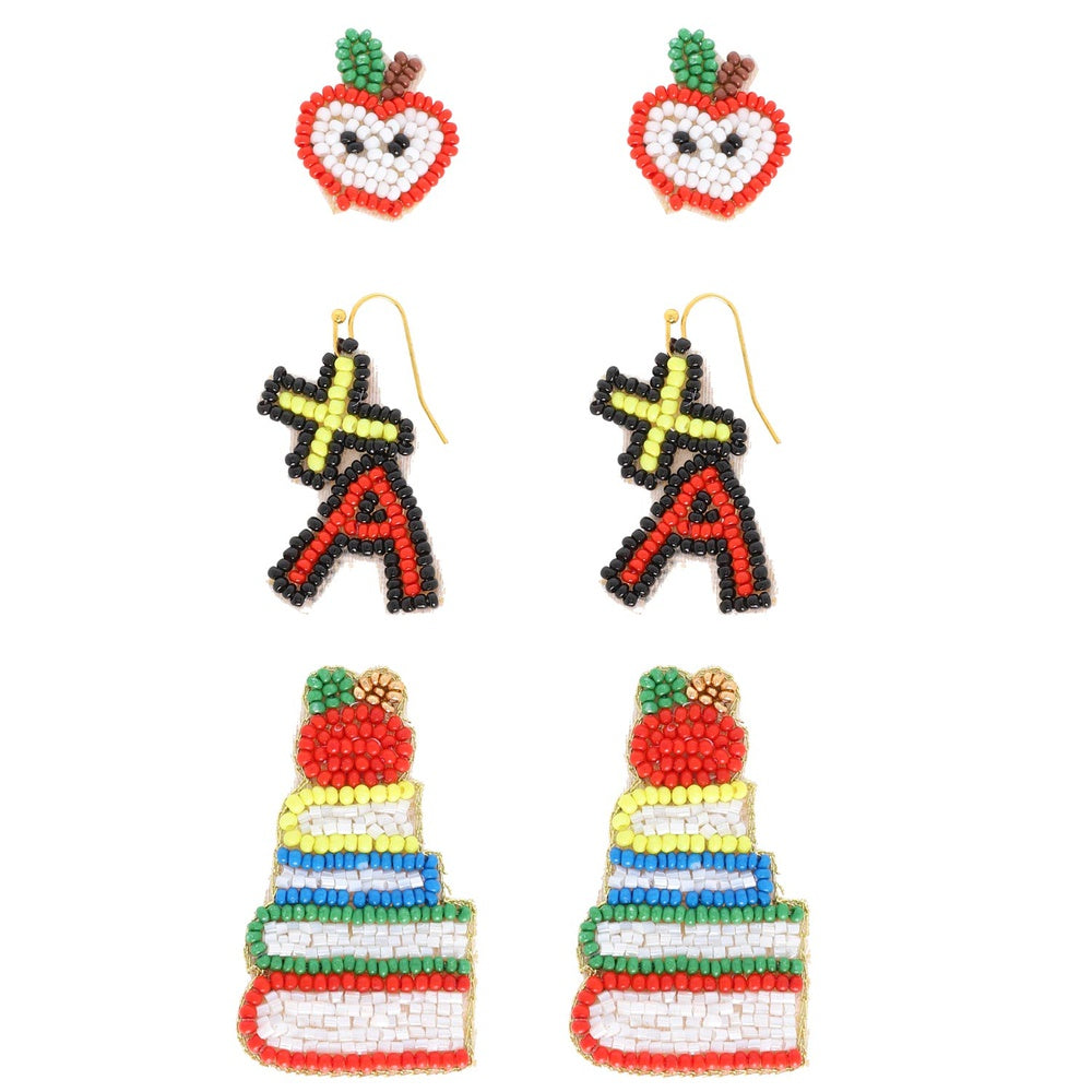 3-PAIR TEACHER APPRECIATION BEADED EARRING SET