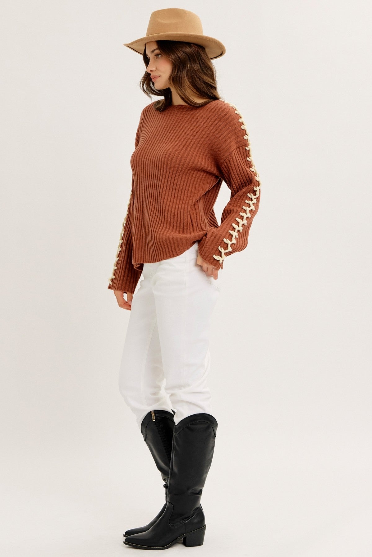 #ribknit #contraststitchsweater #boatsweater #oversizedknit #cozysweaterweather #dropshoulders #winterstyle #everydayknit #layeringpiece #shopcalliope