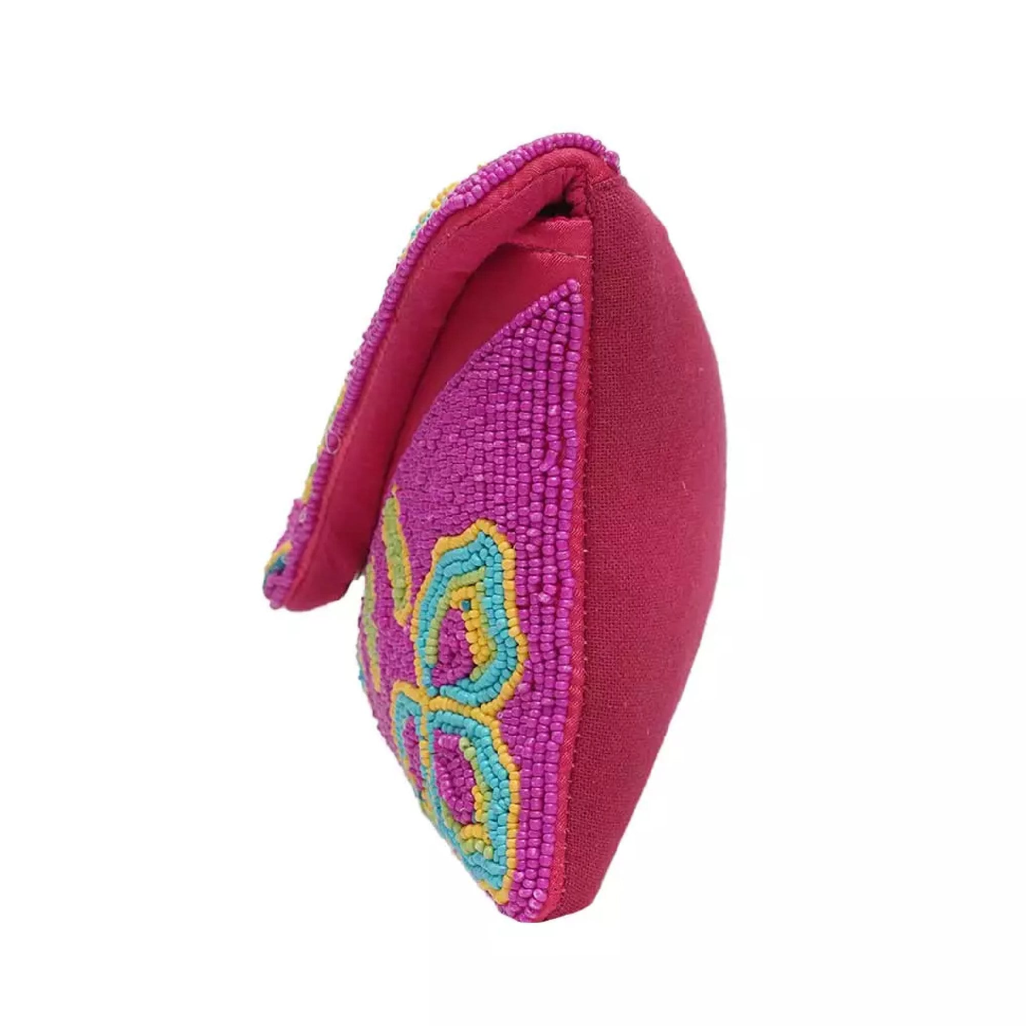 Abstract Floral Seed Beaded Crossbody Chain Clutch Bag