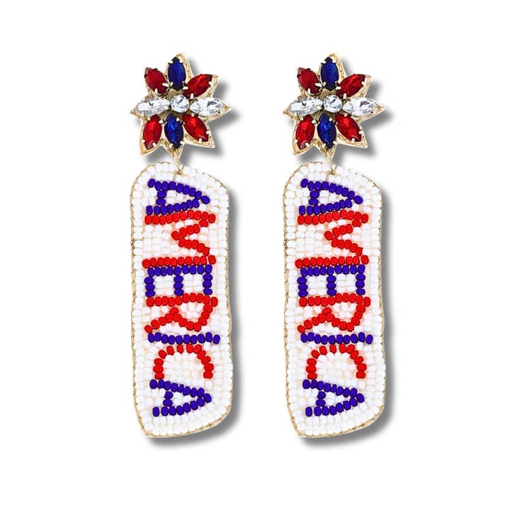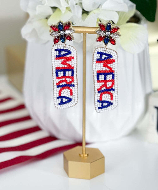 America Patriotic Flag 4th of July Beaded Earrings