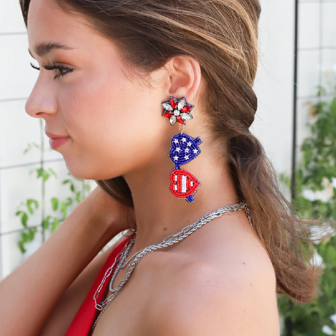 American USA Flag Sunglasses Beaded Earrings
