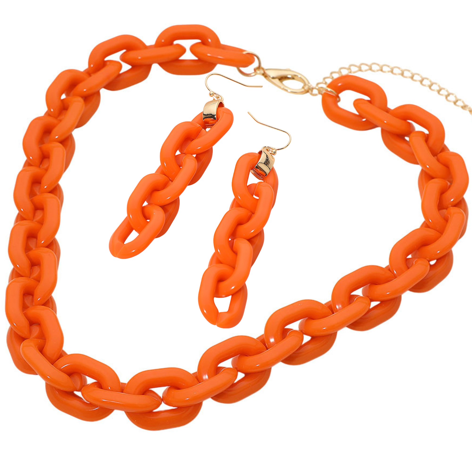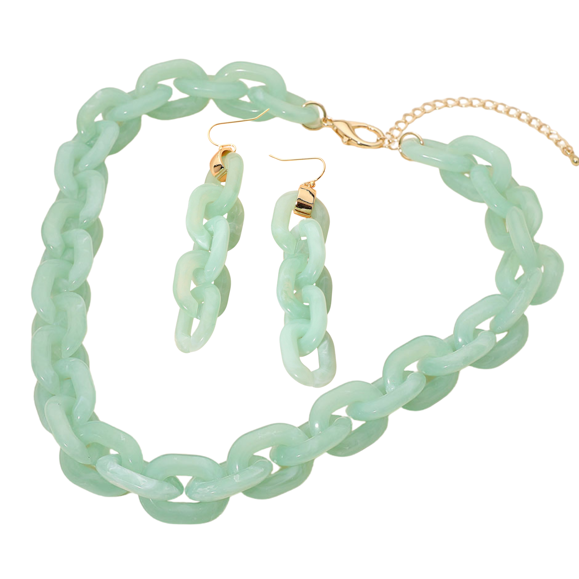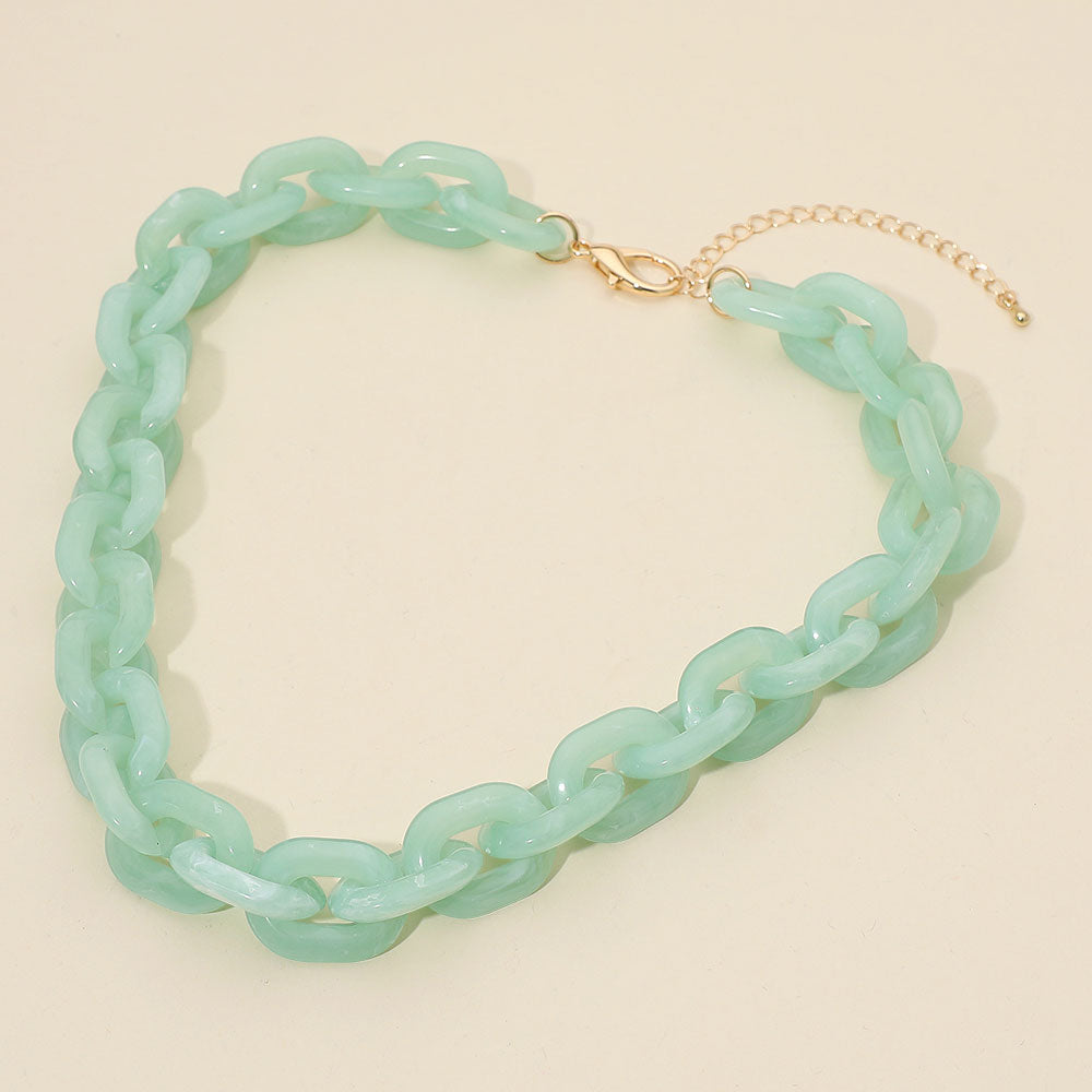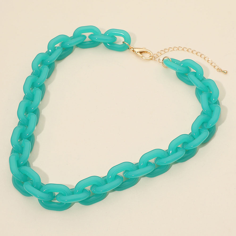 Arden Aqua Chunky Chain Link Necklace & Earrings SET