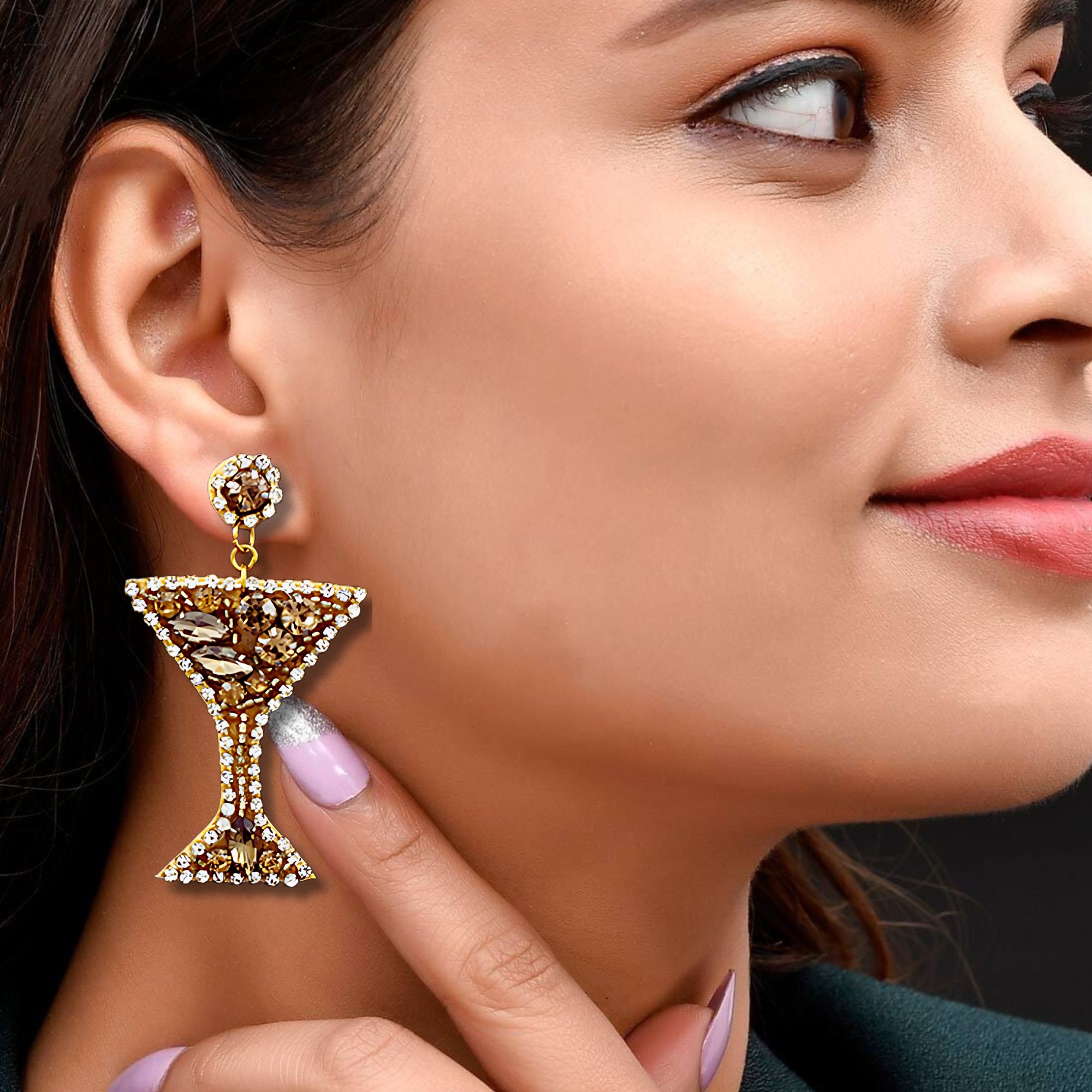 Austrian Crystal Seed Beaded Martini Glass Earrings
