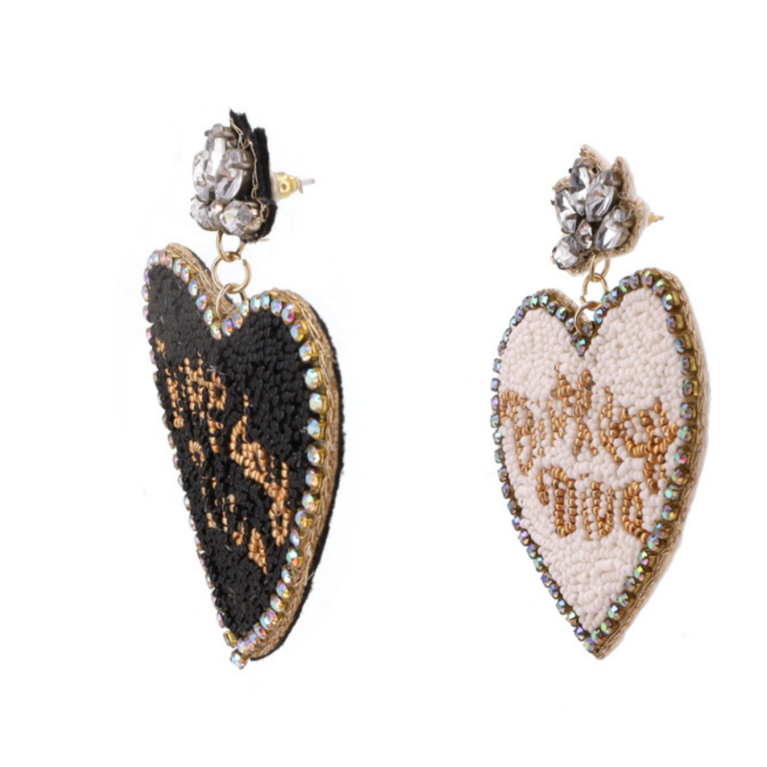 BIRTHDAY DIVA Heart Celebration Beaded Rhinestone Earrings