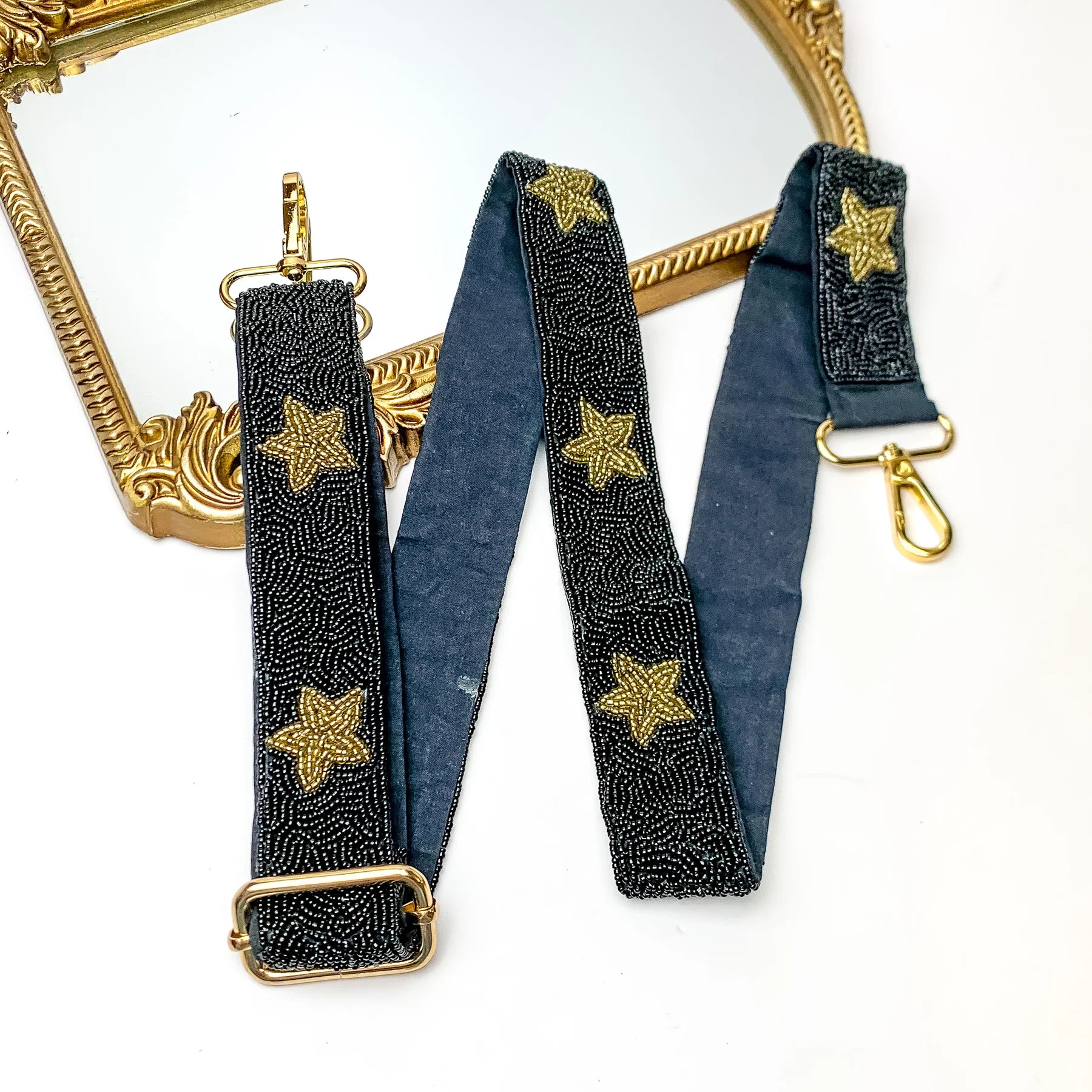 Black Gold Star Beaded Crossbody Bag Strap