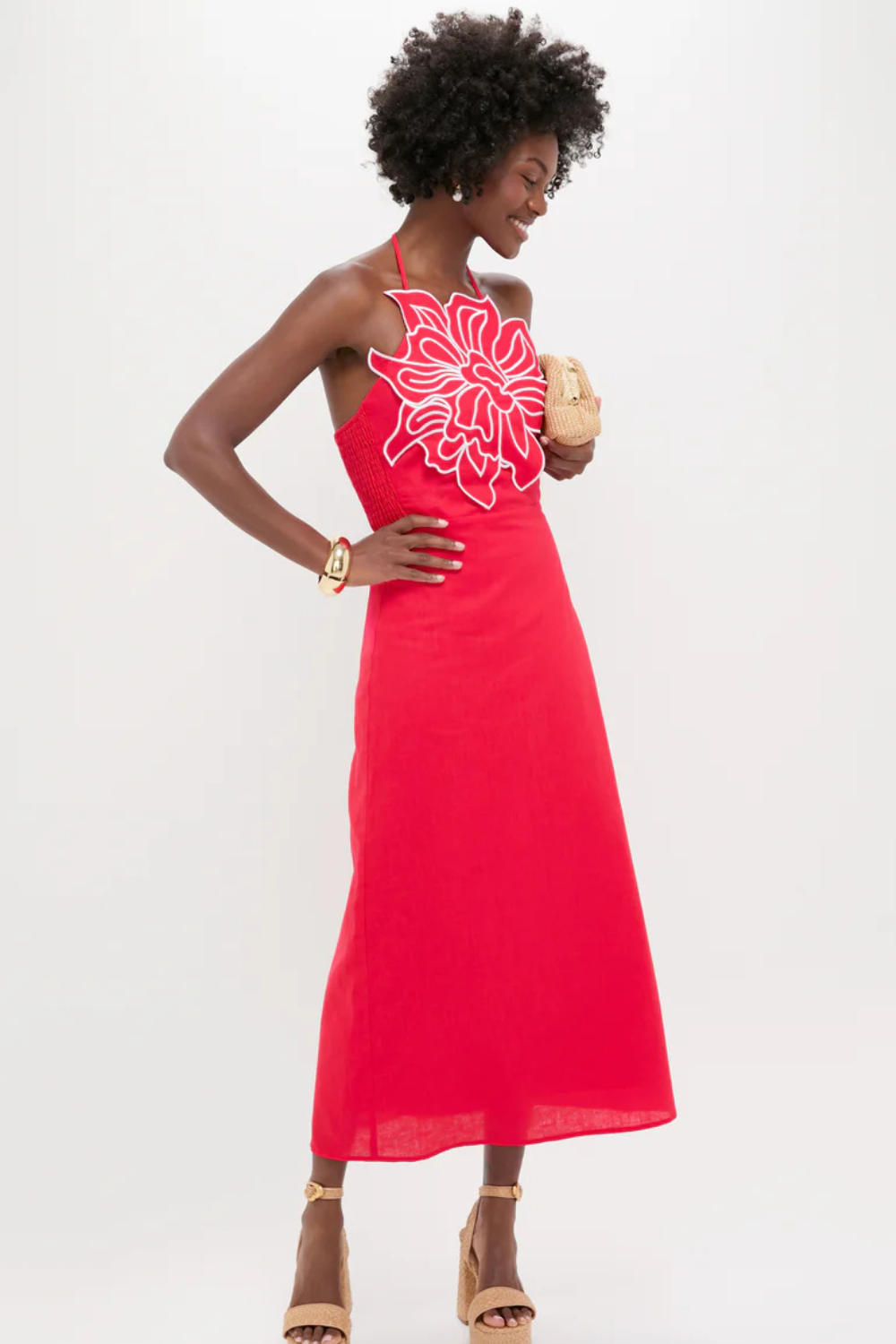 #reddress #halterneckdress #embroidereddress #mididress #specialoccasiondress #weddingguestdress #cocktaildress #holidayoutfit #eveningstyle #boutiquefashion #womensfashion