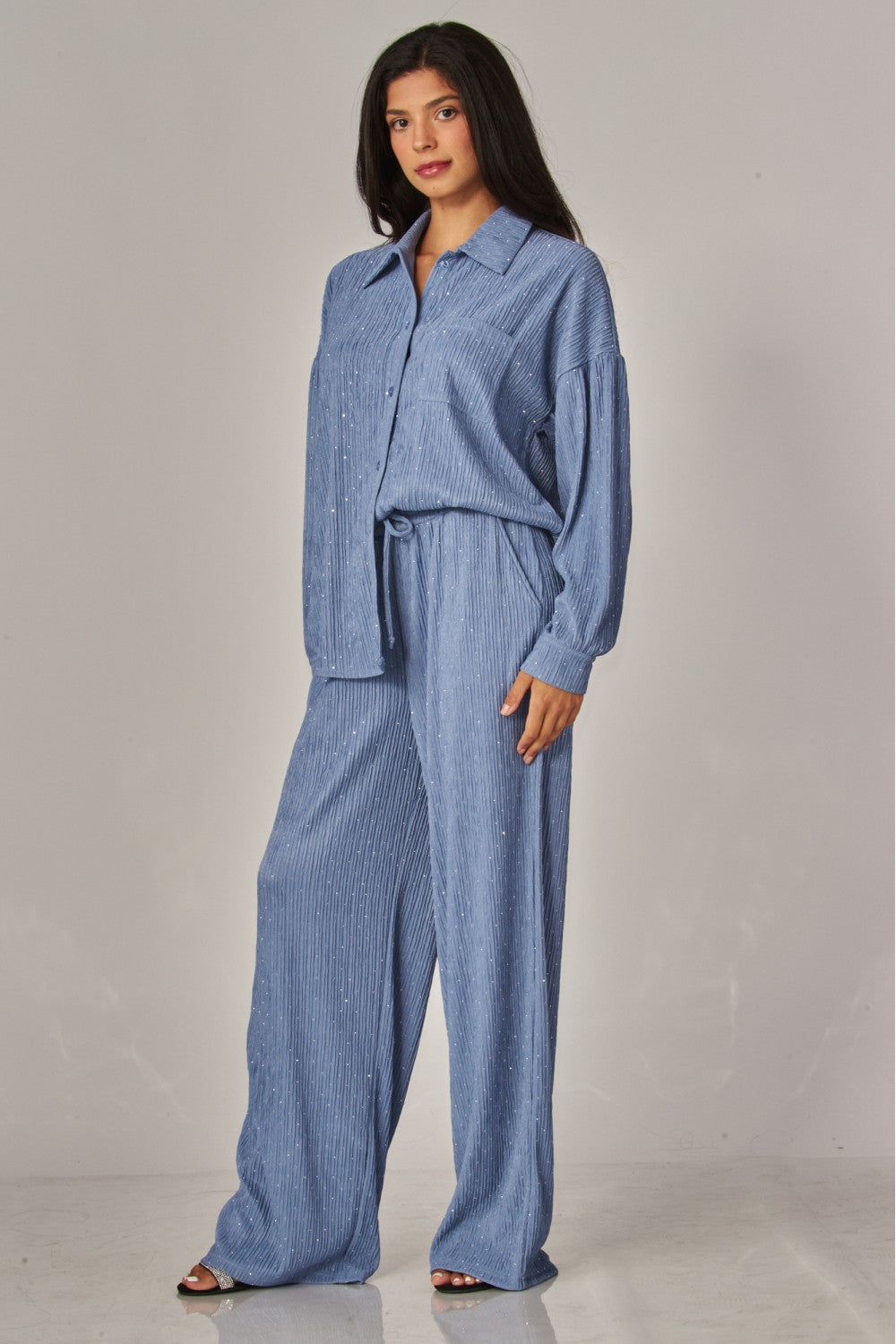 Catch The Light Rhinestone Lounge Pants Set in Blue