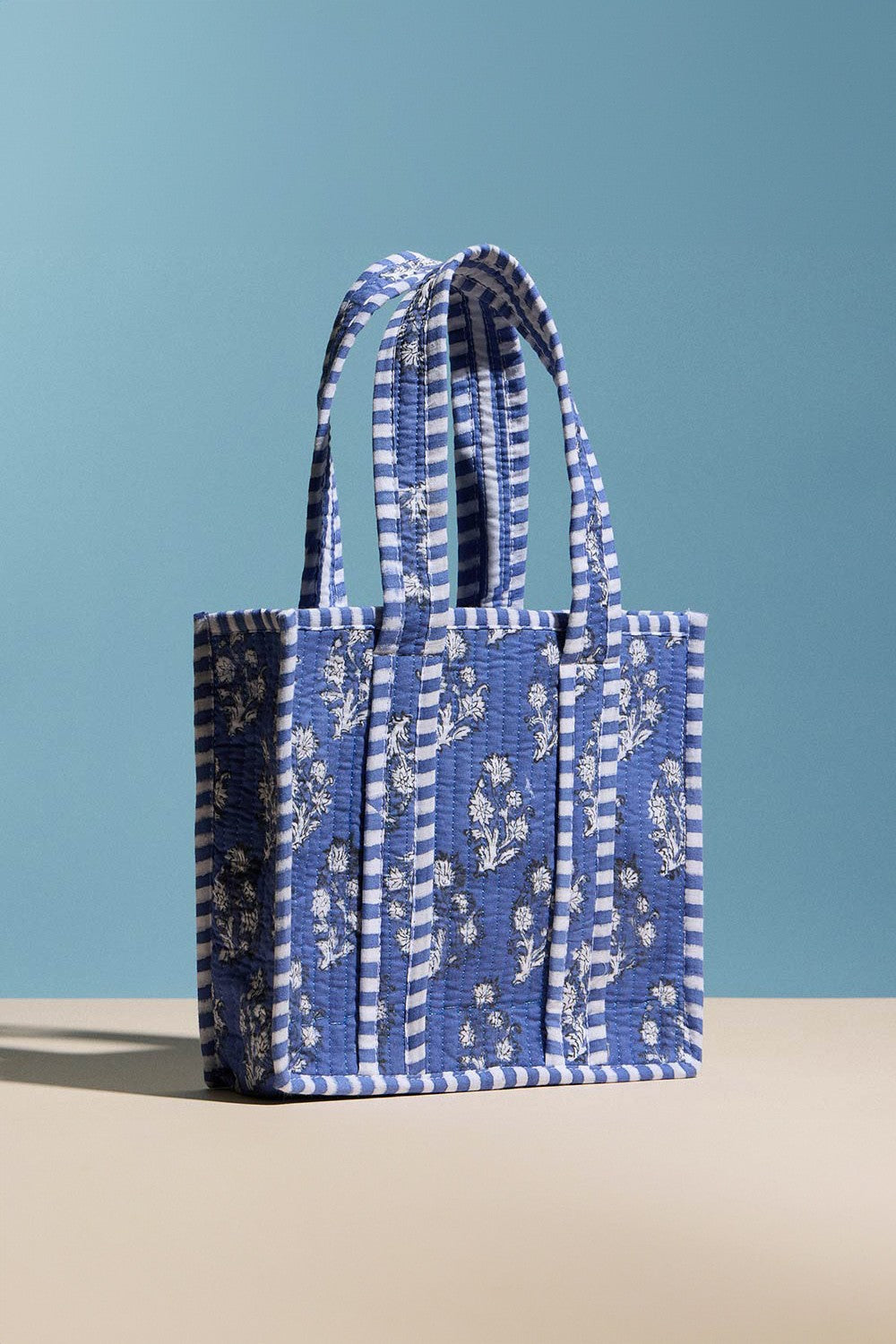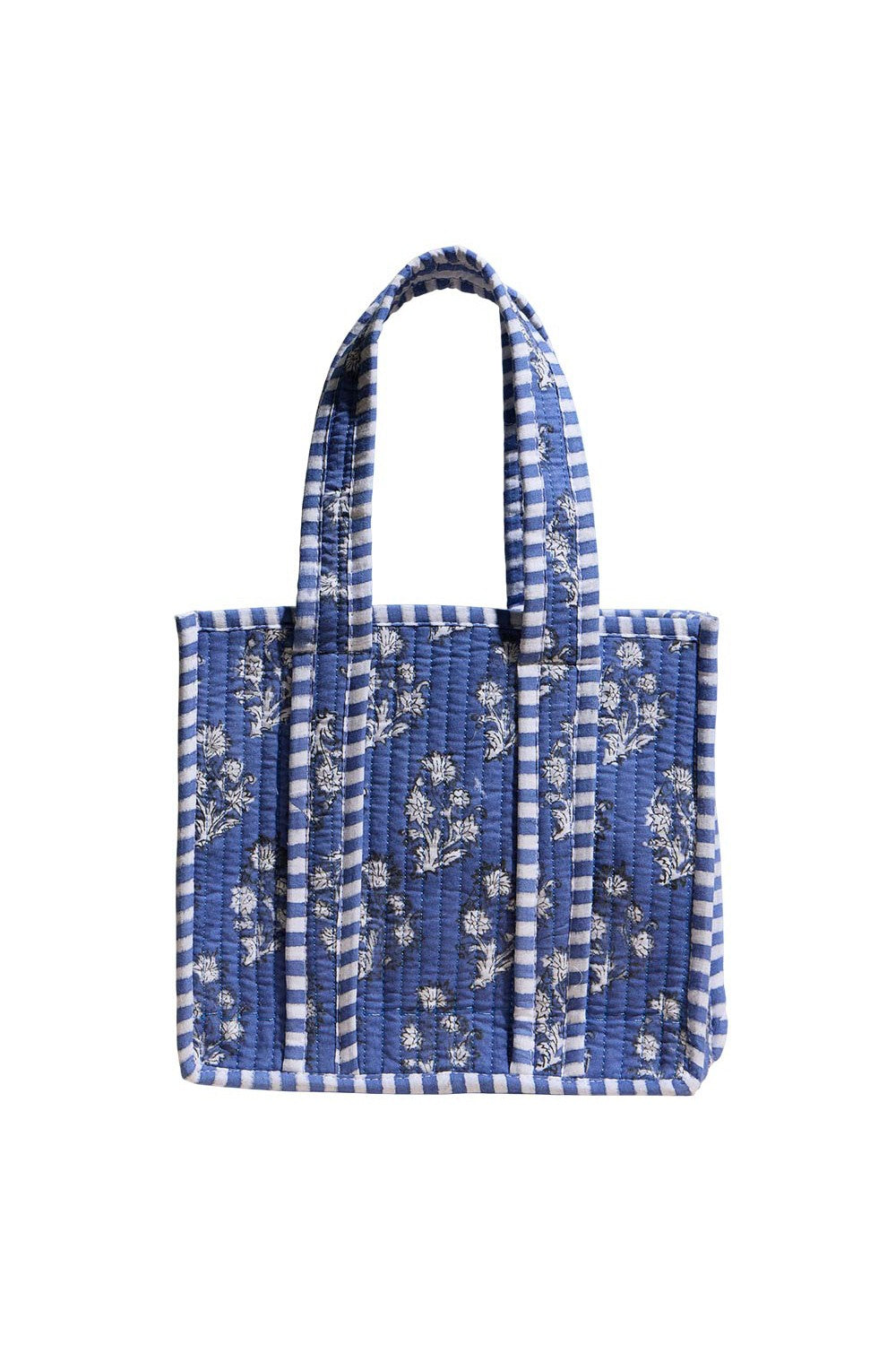 Cece Floral Pattern Quilted Tote Bag This must-have tote bag is crafted out of hand printed fabrics by the skilled artisans of Jaipur, who have inherited this craft from their ancestors. At the heart of their expertise and dedication are the lifeblood of this art form. Many artisans come from generations of block printers, ensuring the preservation of this age-old tradition. Each print possesses a unique allure, reflecting the imperfections and intricacies inherent in handcrafted art. The motifs are inspired by the rich cultural heritage of Jaipur, India. Exclusively ours - you won't find this item anywhere else! Dimensions: Approx. 9" x 9" x 3" Material: 100% cotton Stylish block print makes each item one-of-a-kind Designed in New England, Made in India Height: 9 inch Depth: 3 inch Width: 9 inch Weight: 16 ounce Care Instructions: Spot clean with damp cloth. Hang to dry.