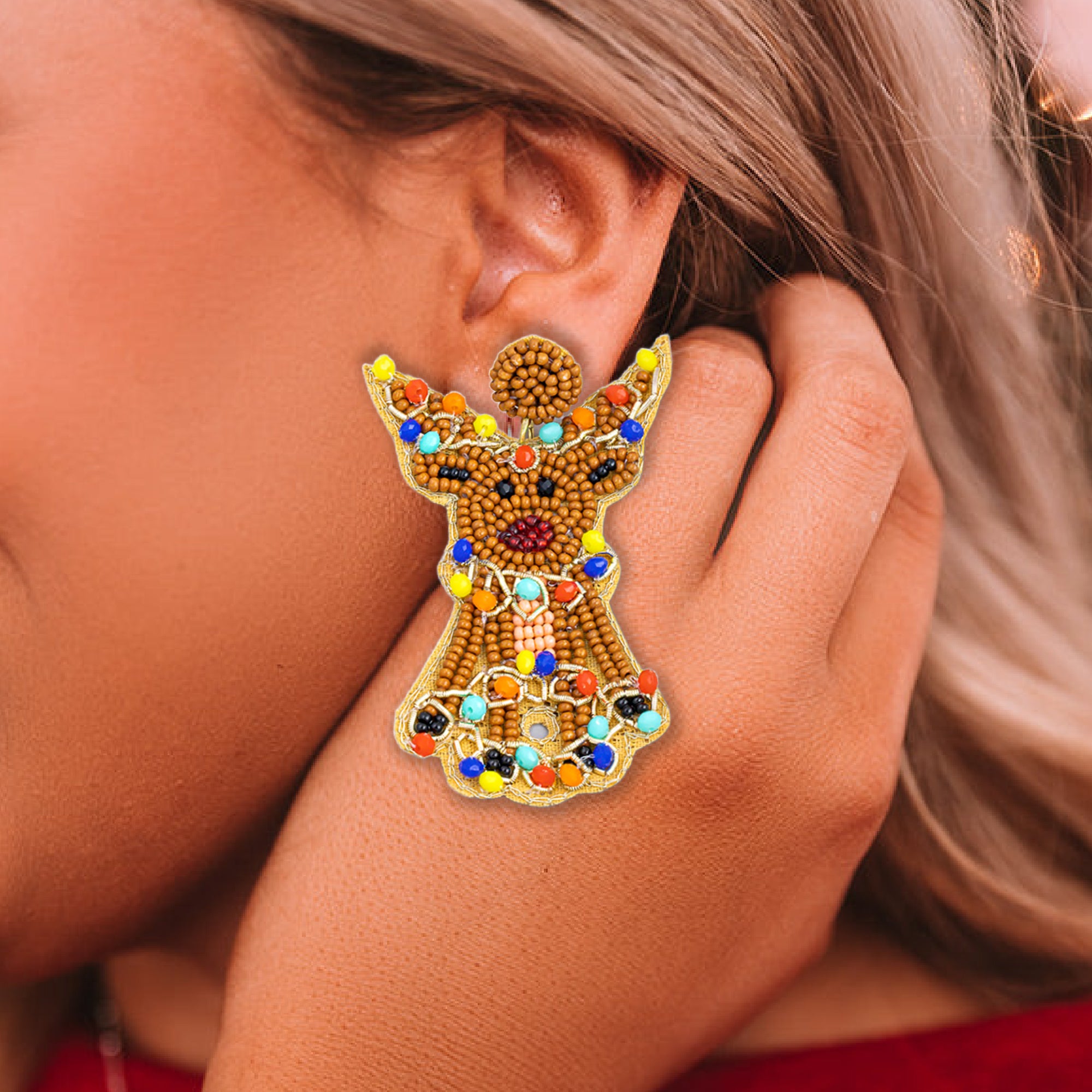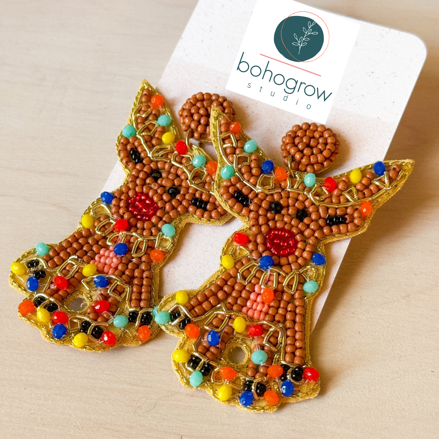 Christmas Rudolph Reindeer All Wrapped Up Beaded Earrings