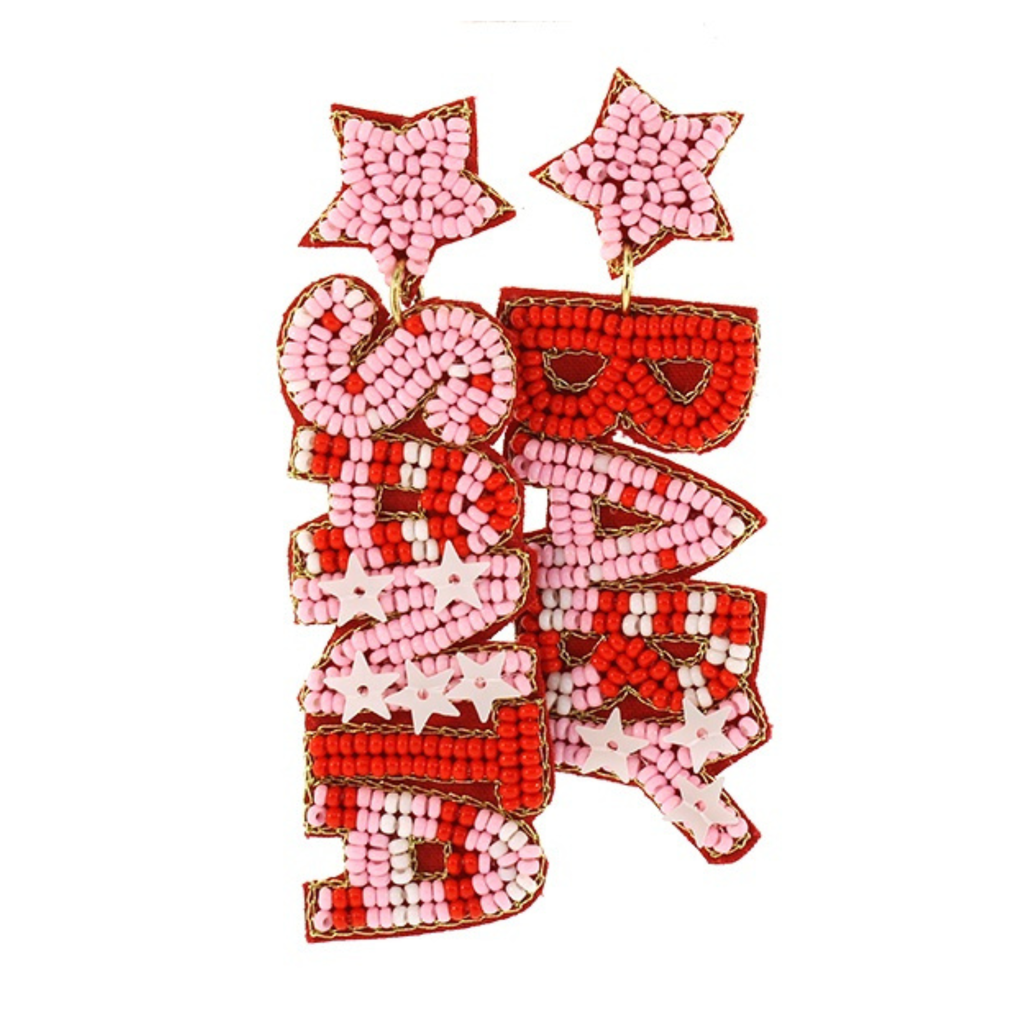Christmas Santa Baby Pink Beaded Drop Earrings