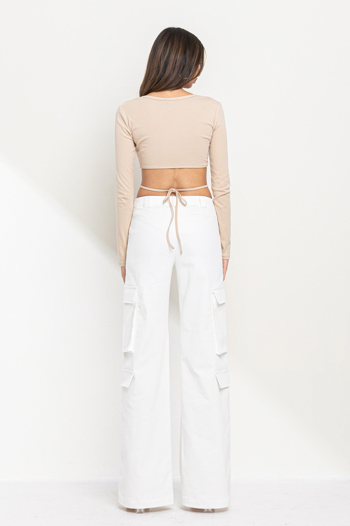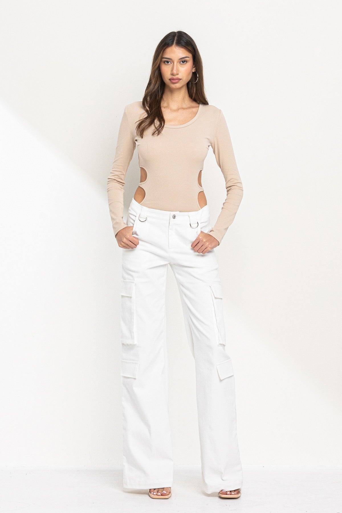 - Cut out back side plain long sleeve bodysuit with straps- Cut-out detail on back side with Straps - Scoop neck - Stretchy - Model size 5' 6" ( Wearing S size)