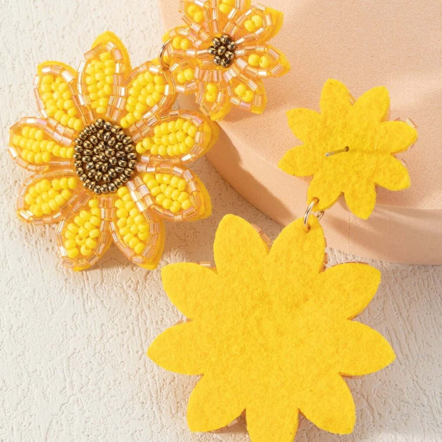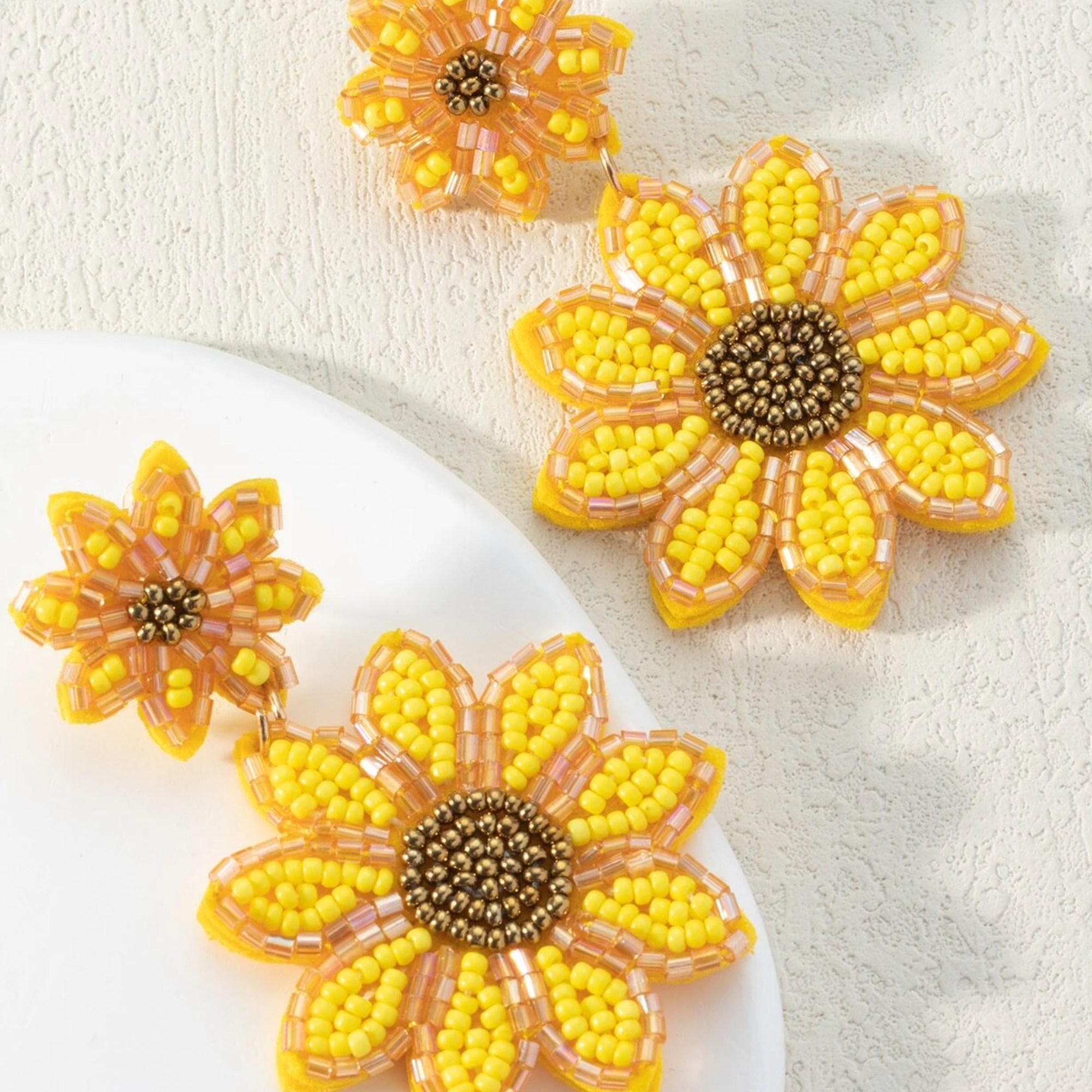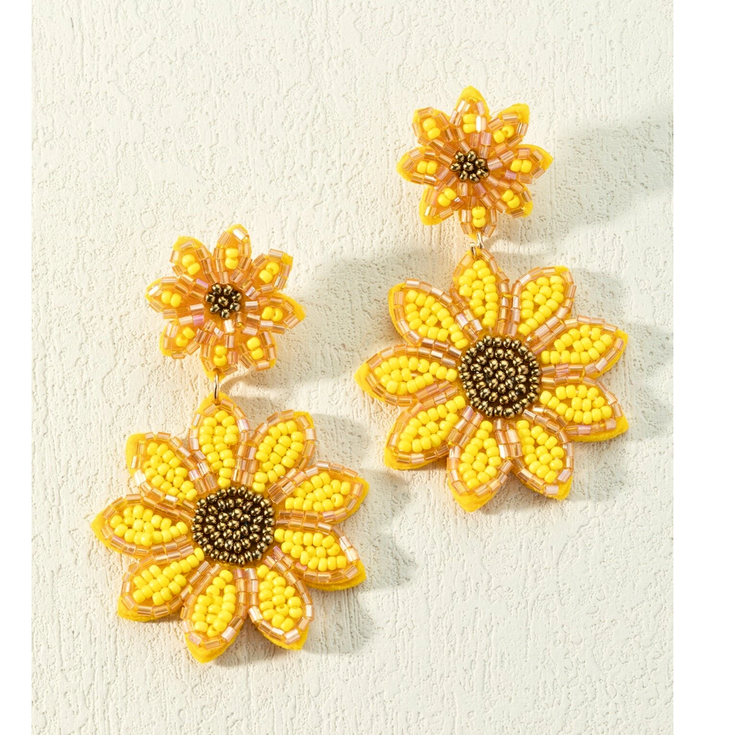 Double Drop Sunflower Seed Beaded Earrings