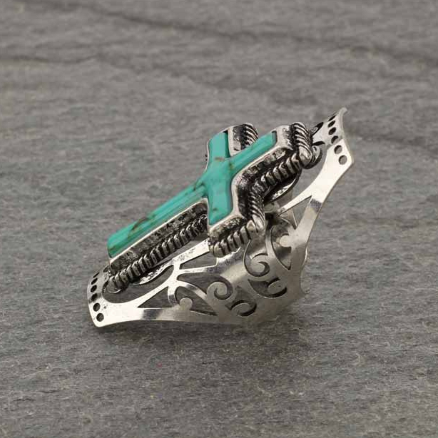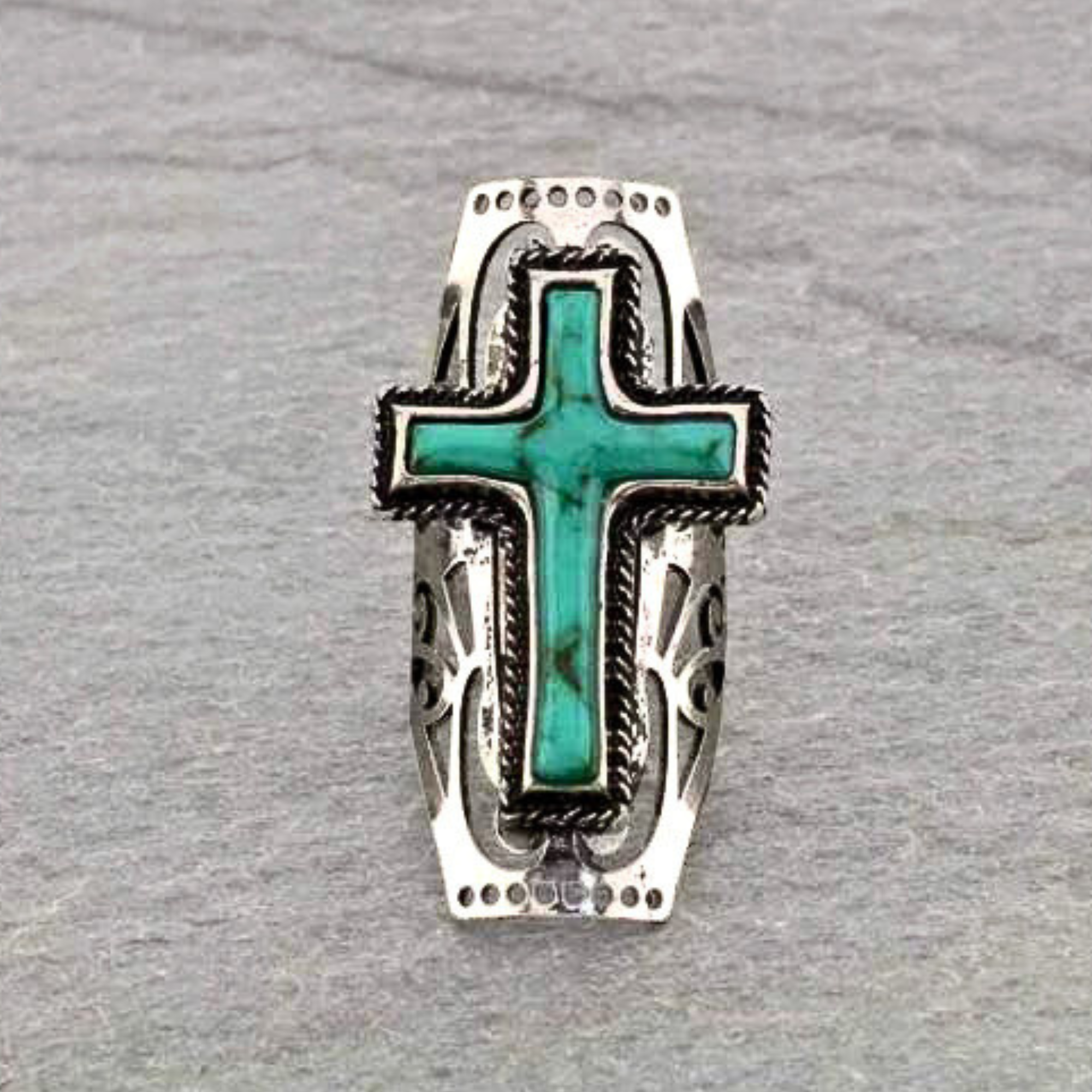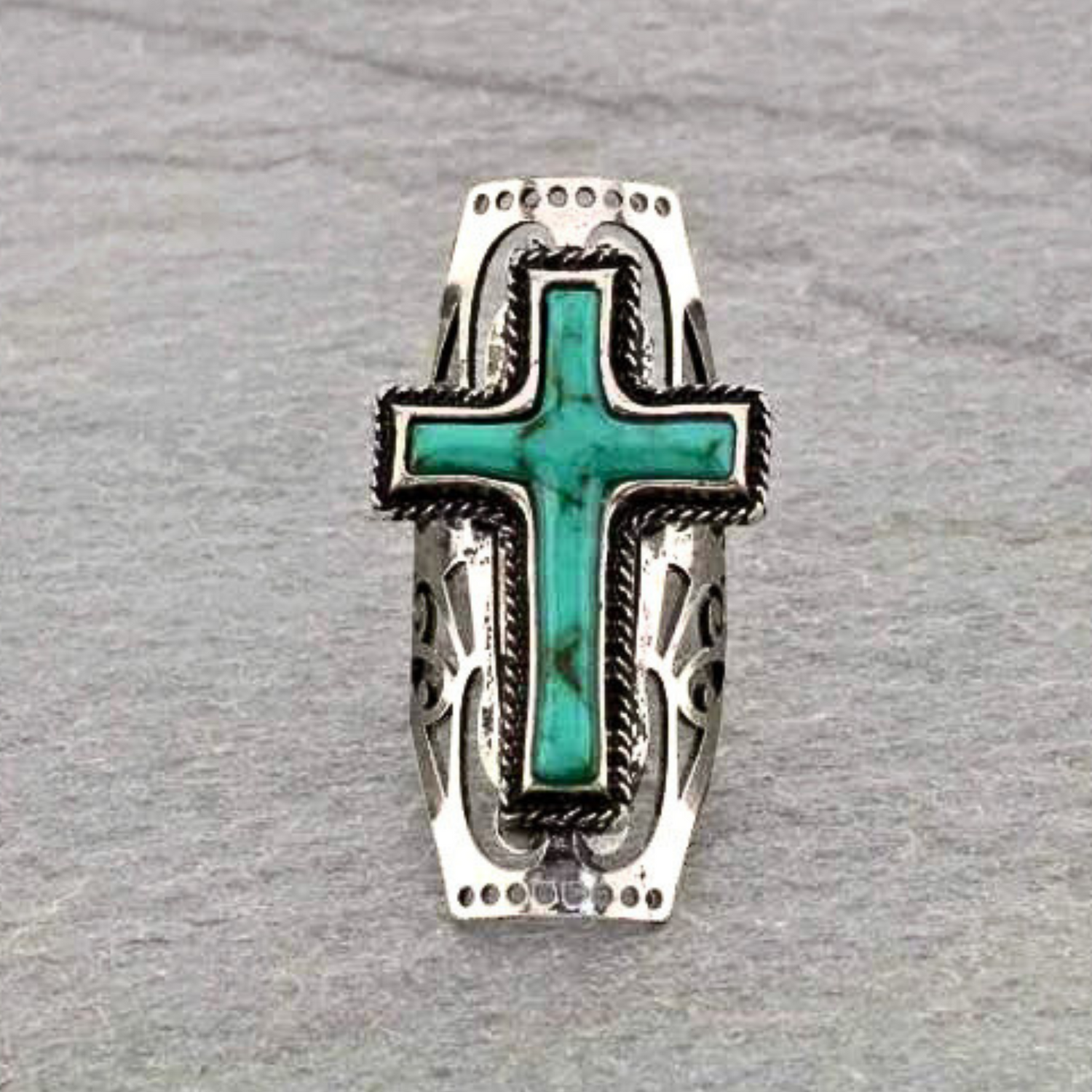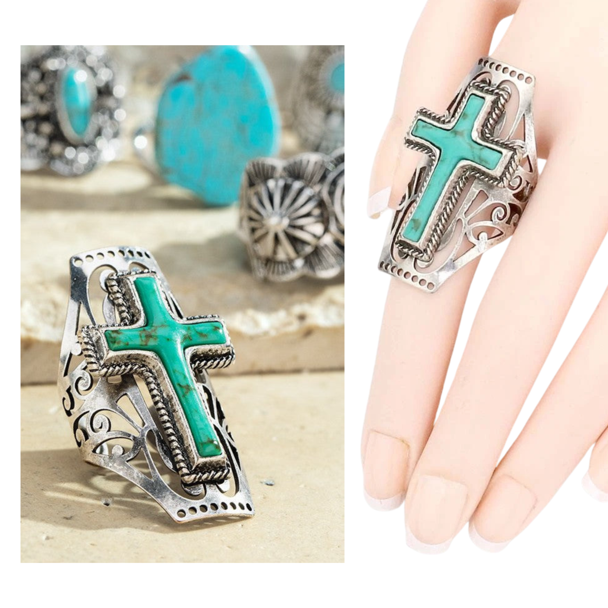 #crossring #faithjewelry #westernstyle #turquenitering #southwesternjewelry #bohojewelry #cowgirlstyle #festivaljewelry #ecofashion #lovecalliope #sustainablejewelry #howlitering #turquoisejewelry
