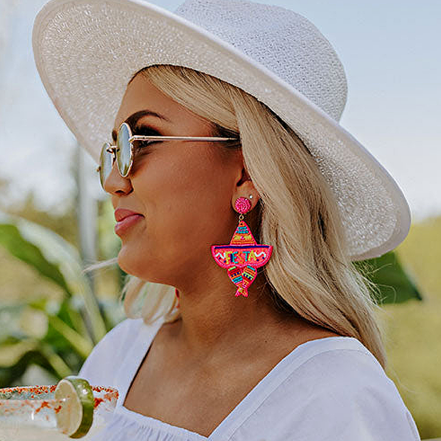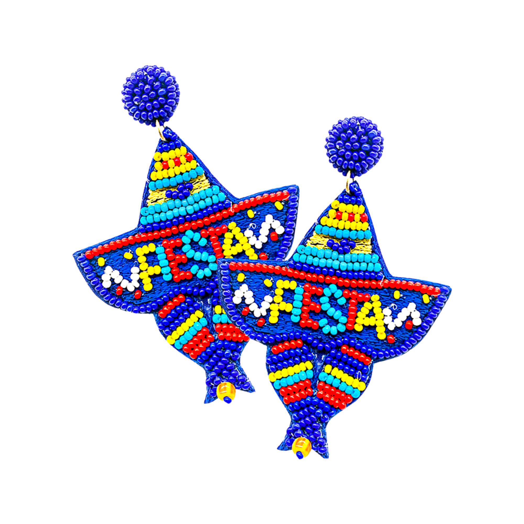 Fiesta Mexican Festival Party Sombrero Beaded Earrings