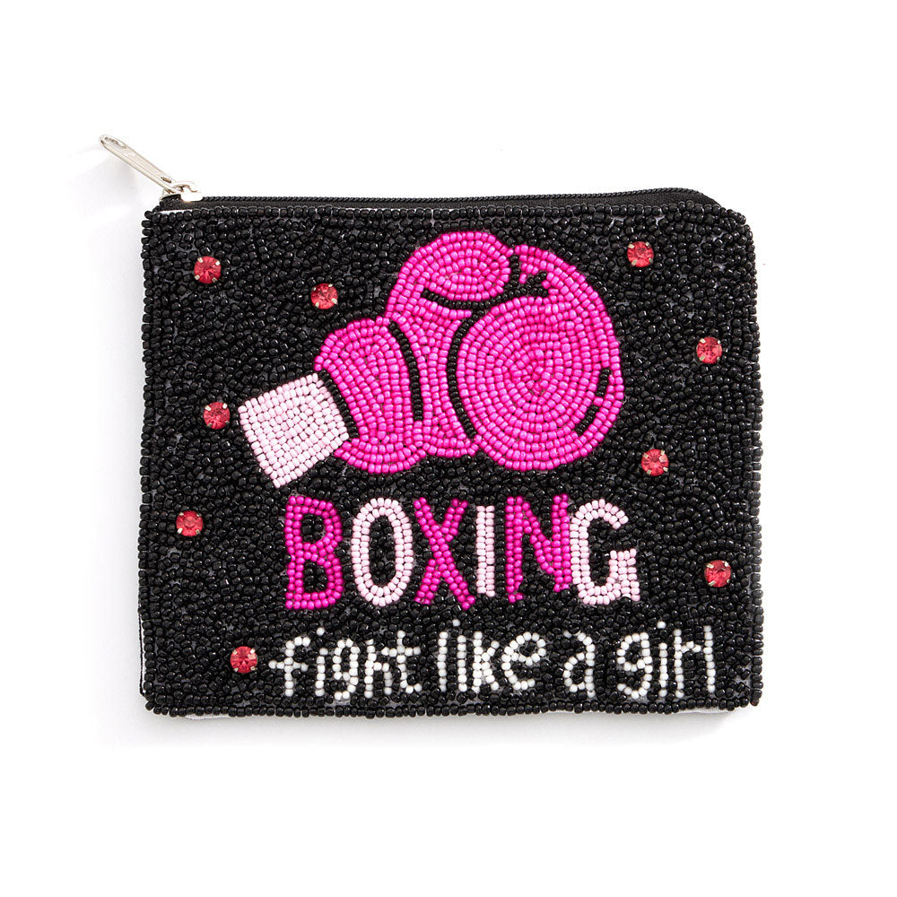 Fight Like A Girl Boxing Beaded Mini Pouch Bag