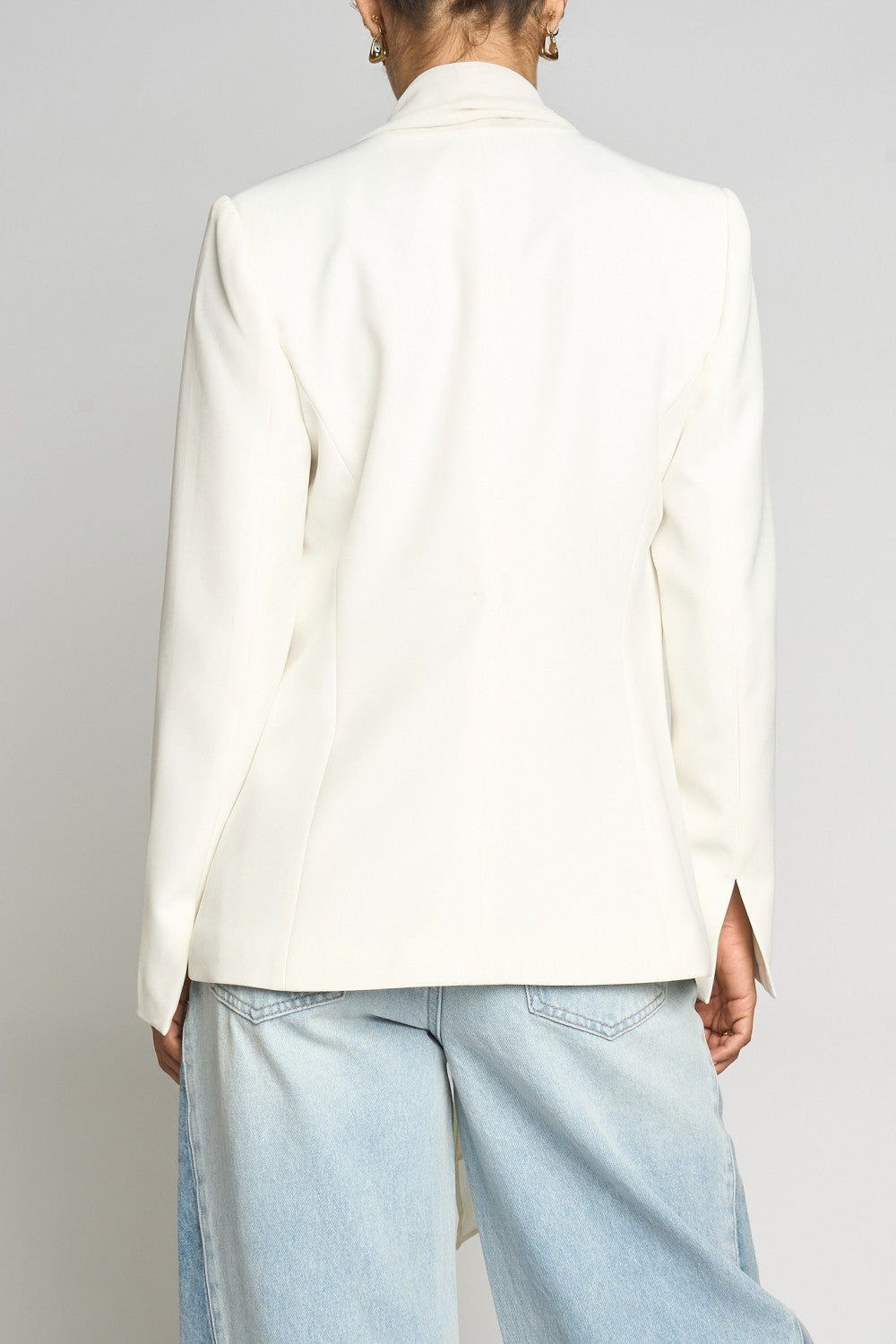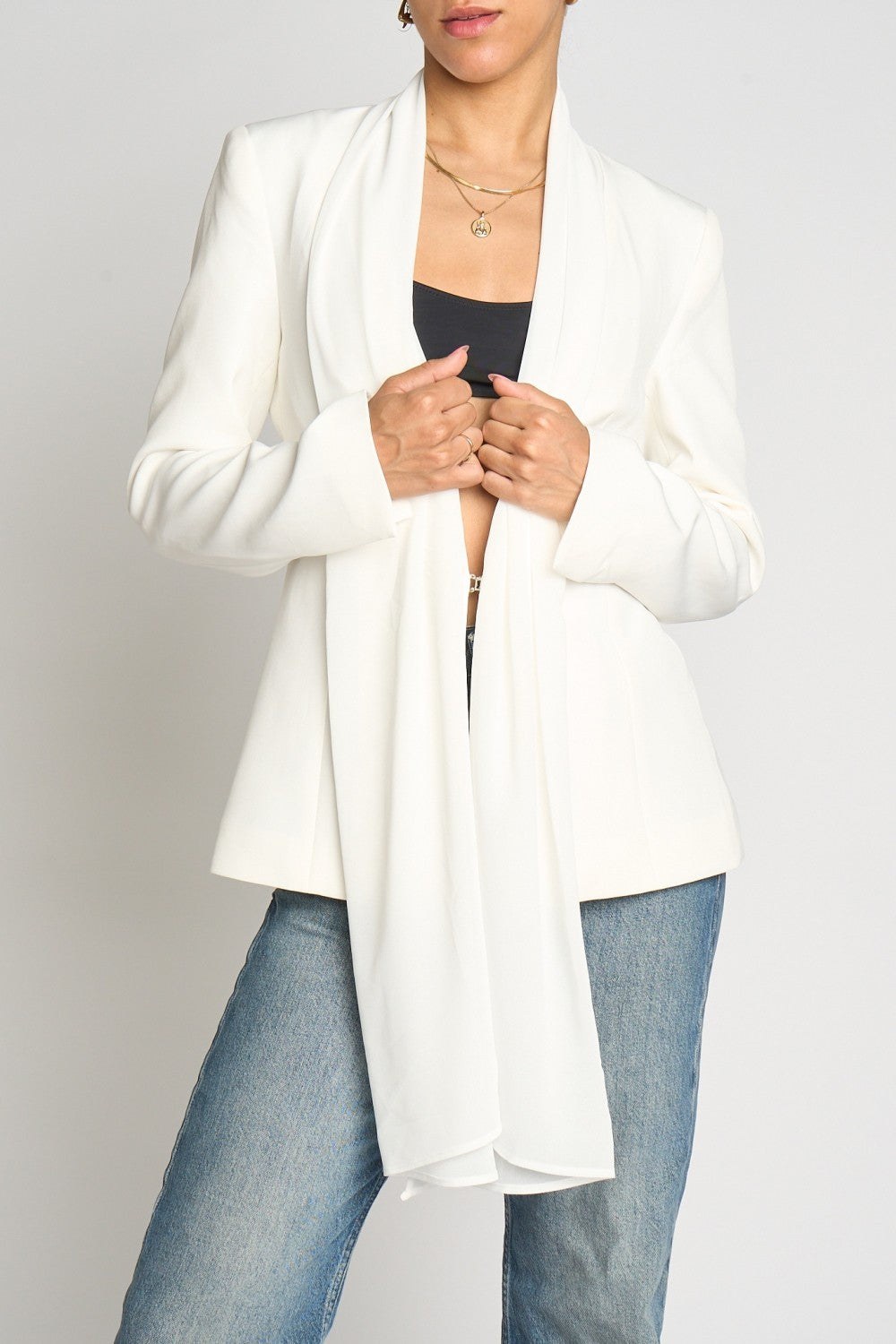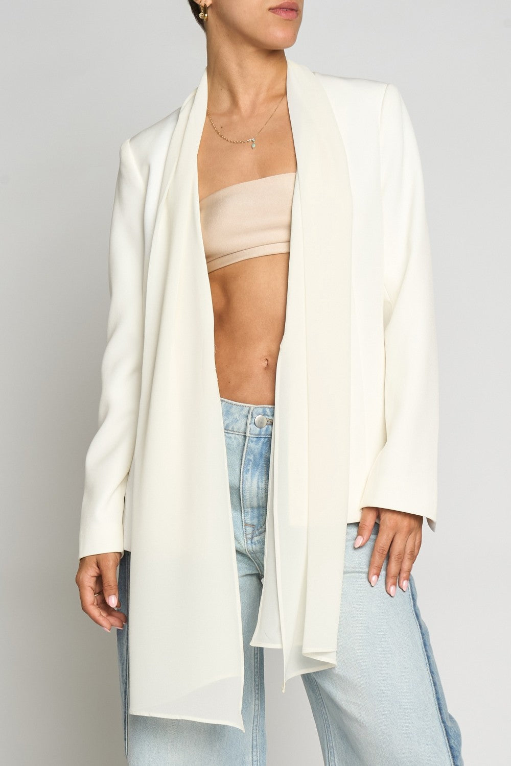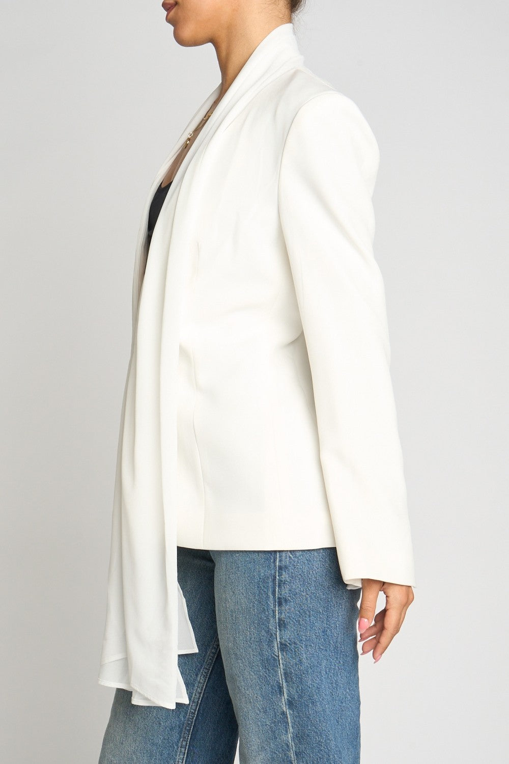 When your outfit needs to look like you’ve got your life together (even if you’re running on caffeine and vibes) 🖤 This blazer’s draped scarf-tie neckline brings instant polish, while the stretch fabric keeps it comfortable and easy to wear. Description The Scarf Tie Front Blazer is your sleek, elevated layer for w