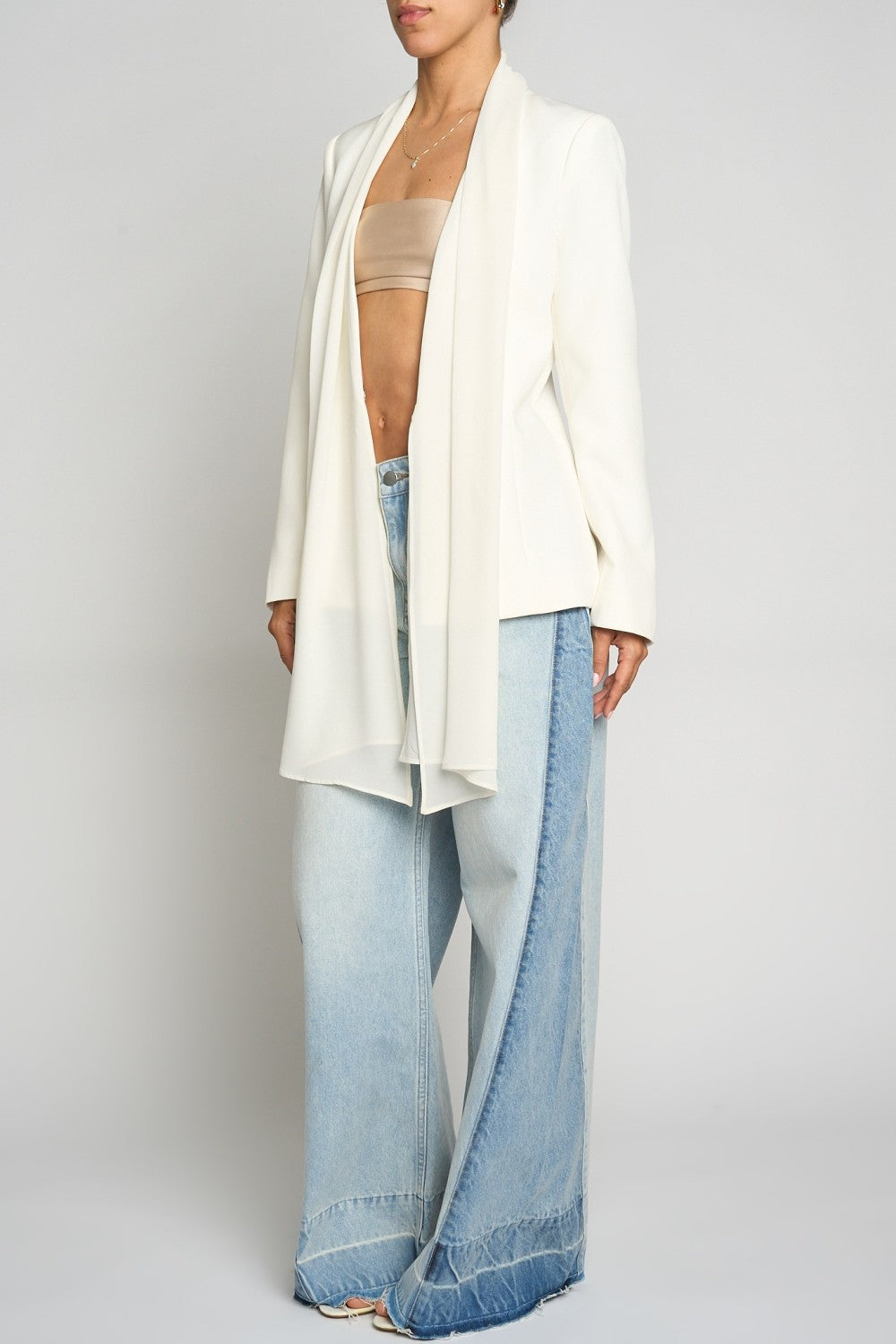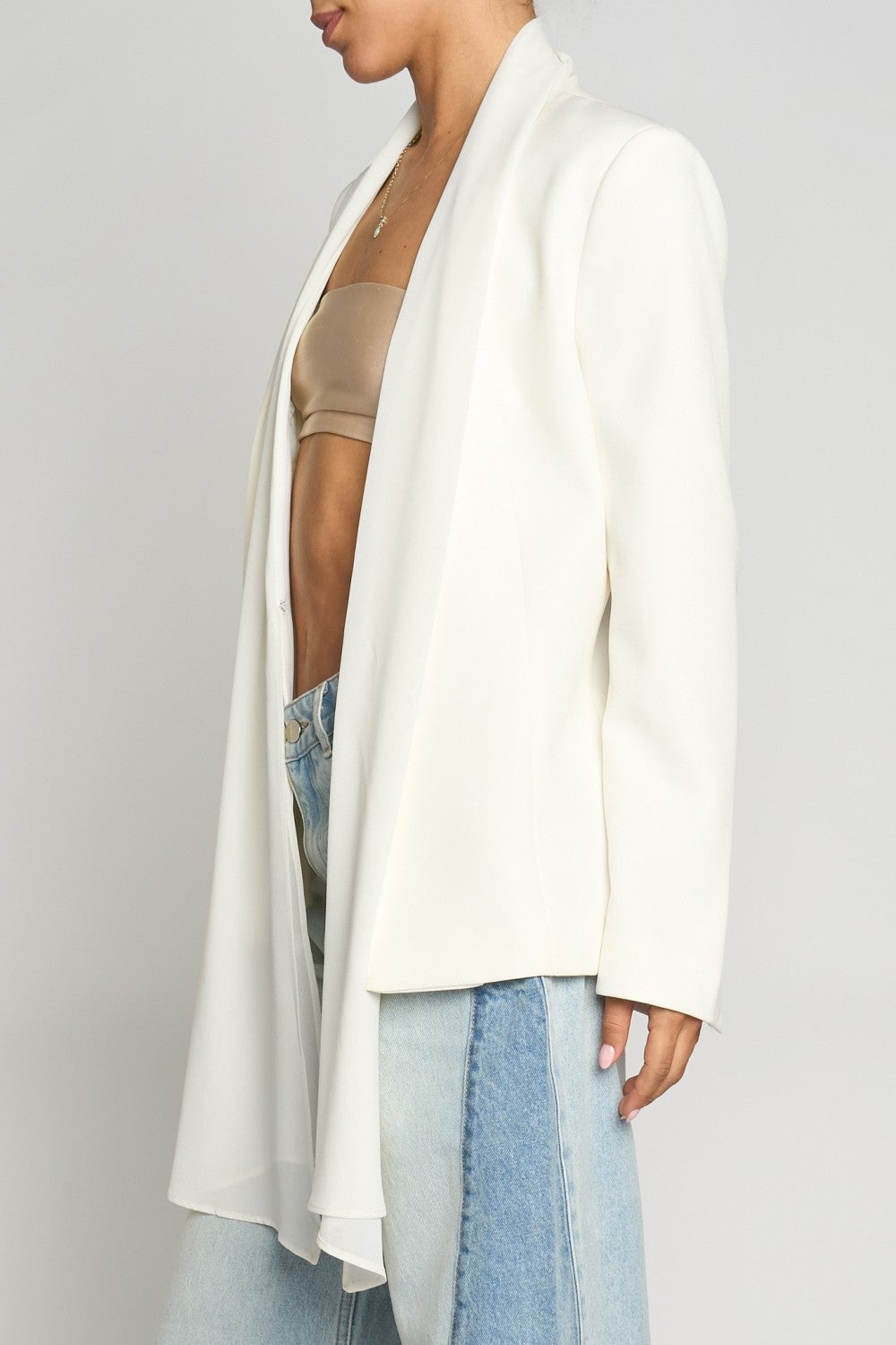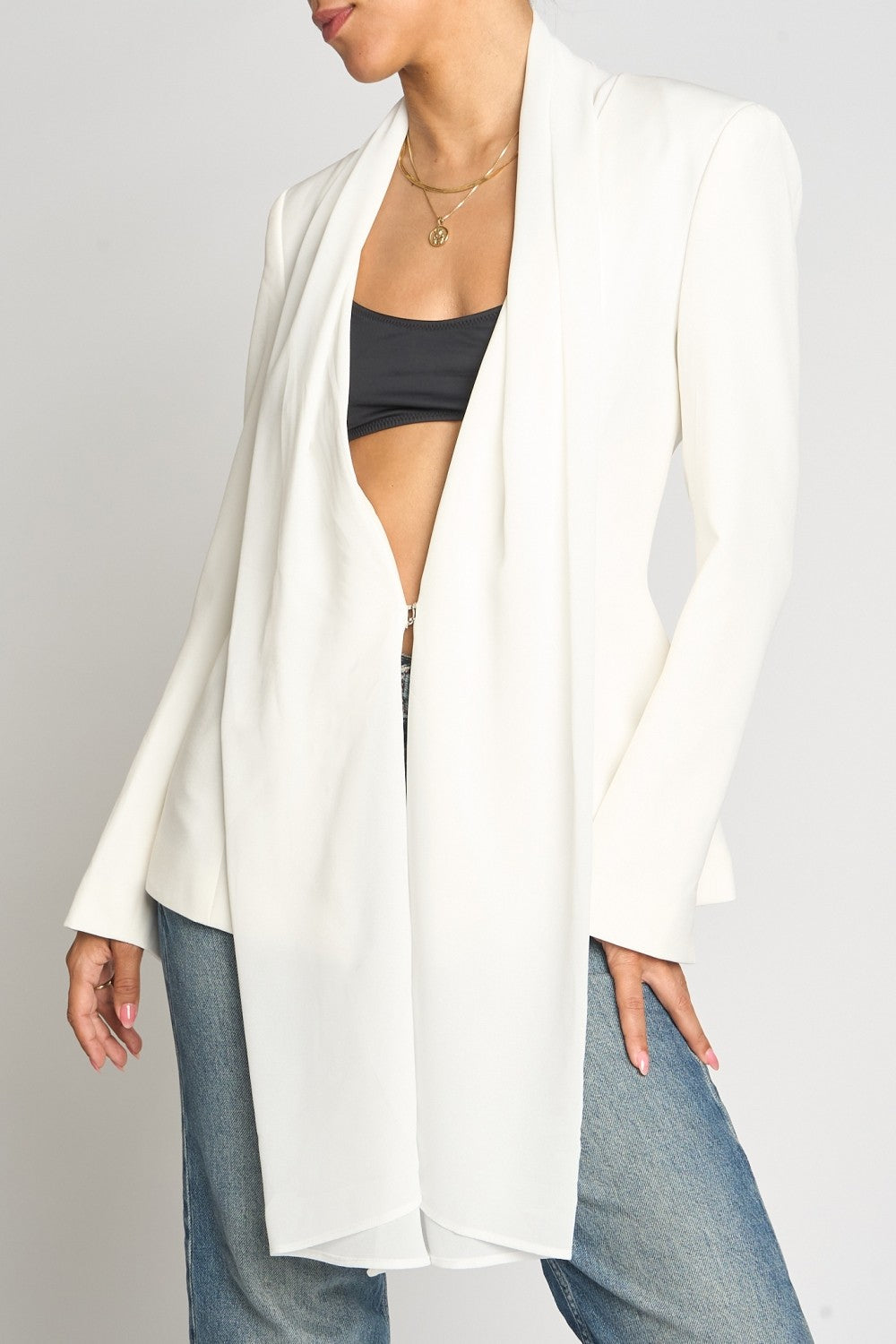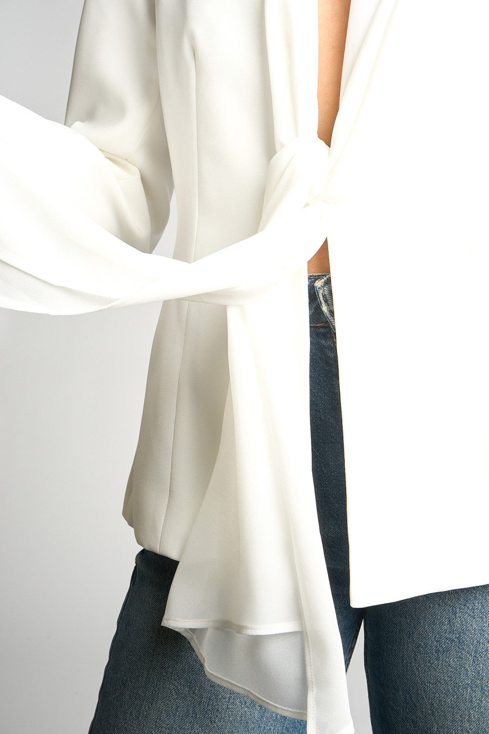 When your outfit needs to look like you’ve got your life together (even if you’re running on caffeine and vibes) 🖤 This blazer’s draped scarf-tie neckline brings instant polish, while the stretch fabric keeps it comfortable and easy to wear. Description The Scarf Tie Front Blazer is your sleek, elevated layer for w