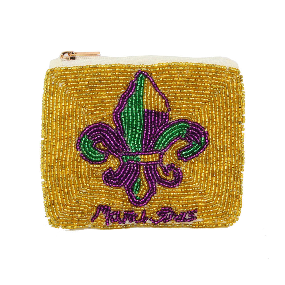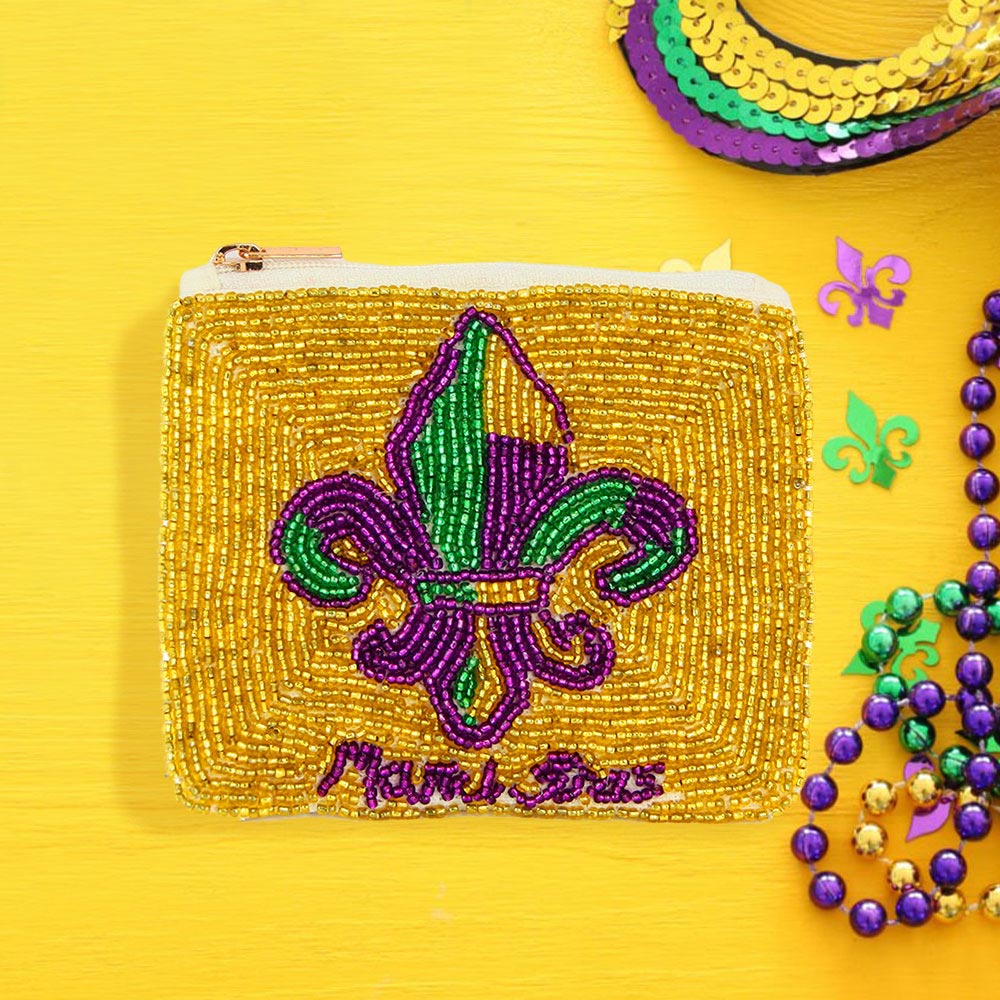 Fleur de Lis Mardi Gras Beaded Coin Pouch Bag