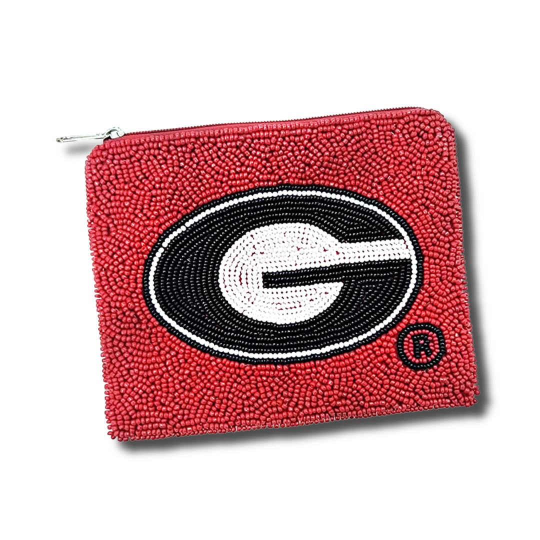 Football UGA Logo Red Beaded Storage Coin Pouch