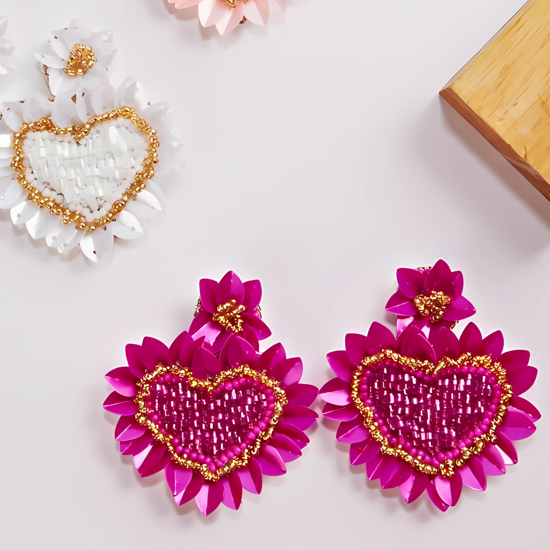 Fuchsia Heart Sequin Sparkle Beaded Drop Earrings