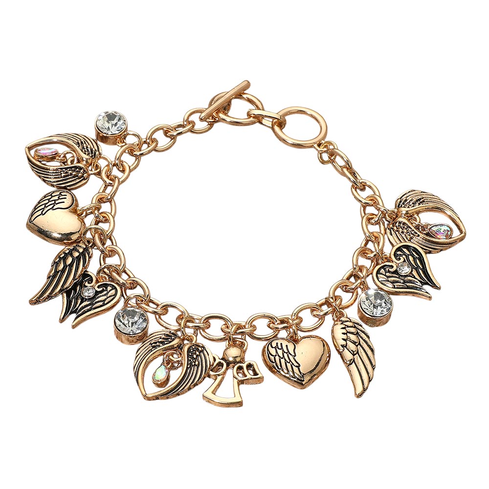 Gold On Angel Wings Charm Bracelet