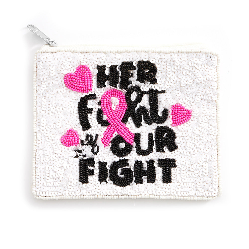 Her Fight Is Our Fight Beaded Pink Ribbon Cancer Mini Pouch Bag