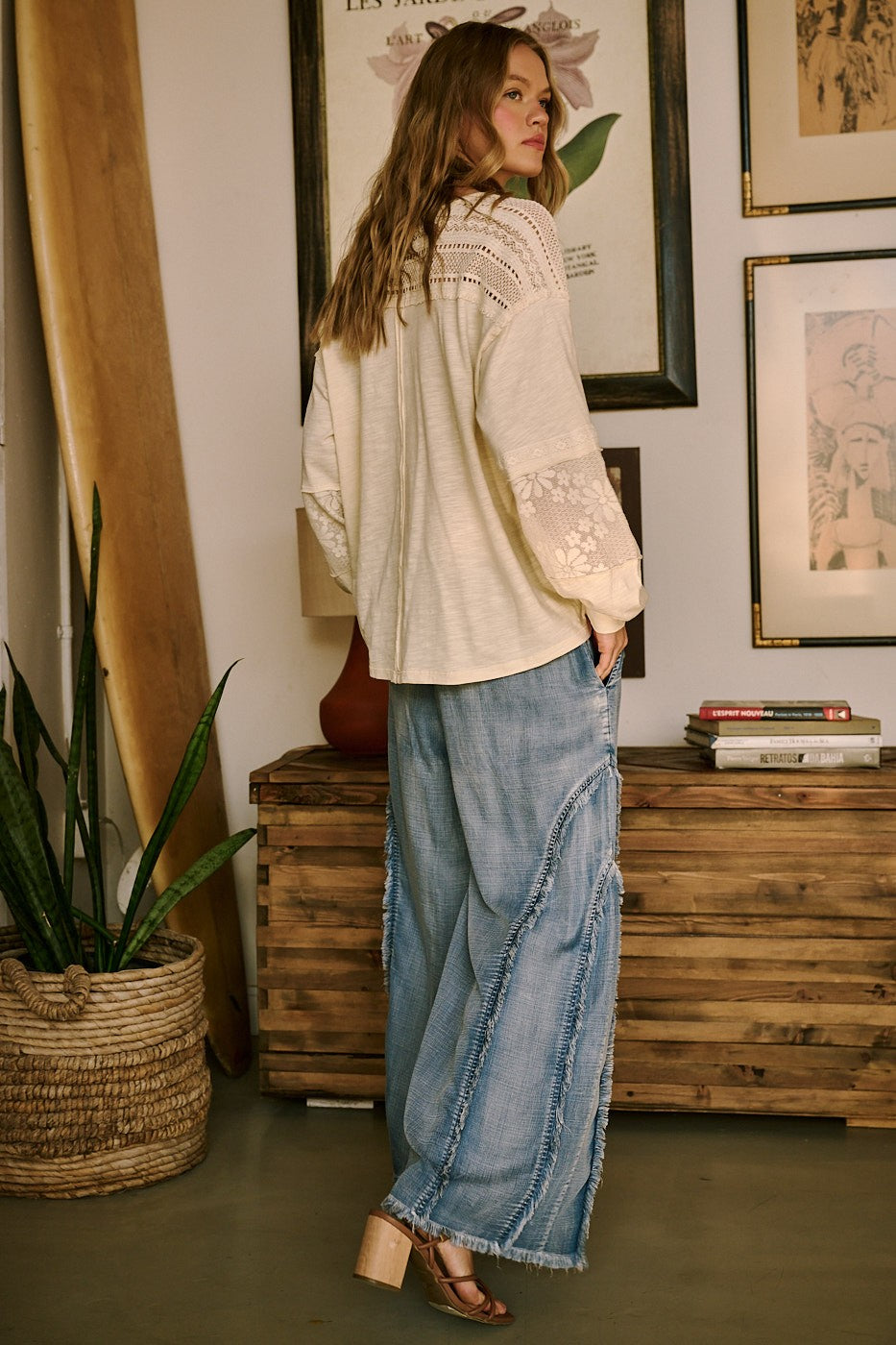Soft chambray vibes, wide-leg ease, and just enough fringe to keep it interesting. 🌿 These are the pants you throw on when you want comfort, movement, and a little western-boho swagger.