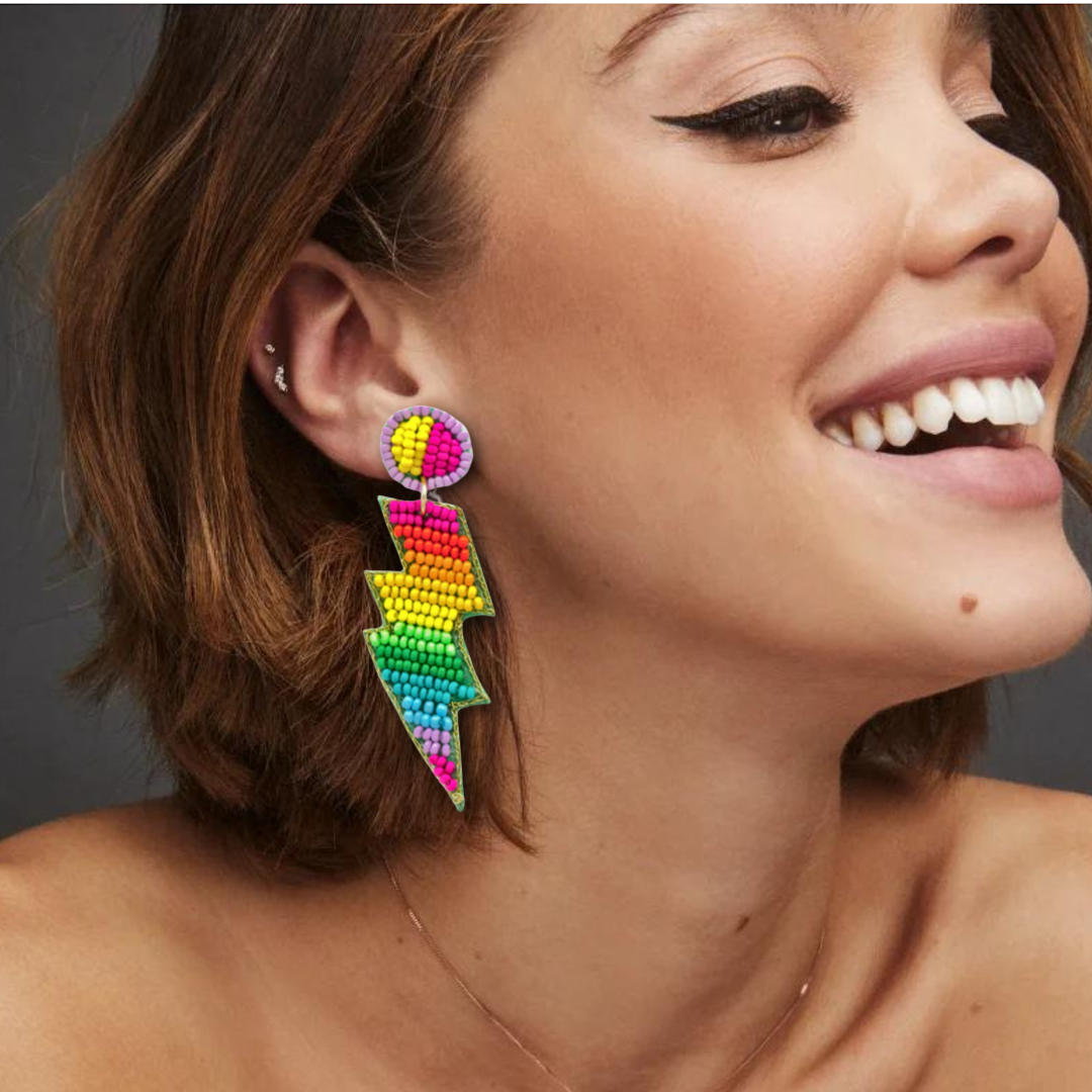 Lightning Rainbow Beaded Dangle Statement Earrings