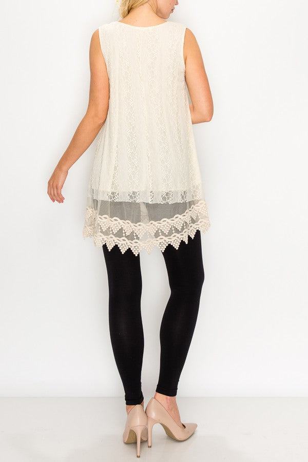 Lola Lined Lace Detail Hi-Lo Tank Top in Beige
