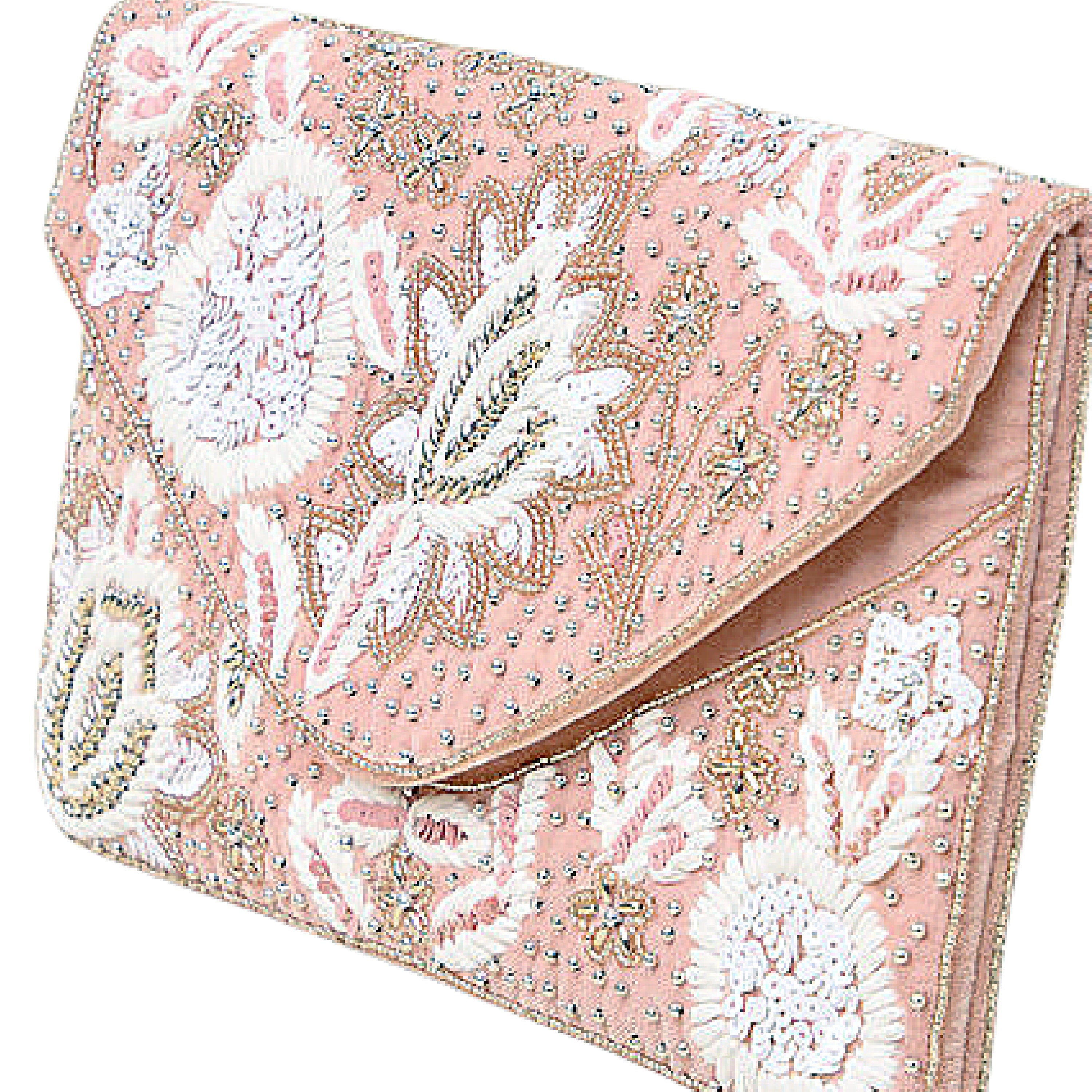 Make Me Blush Beaded Raffia Crossbody Clutch Handbag
