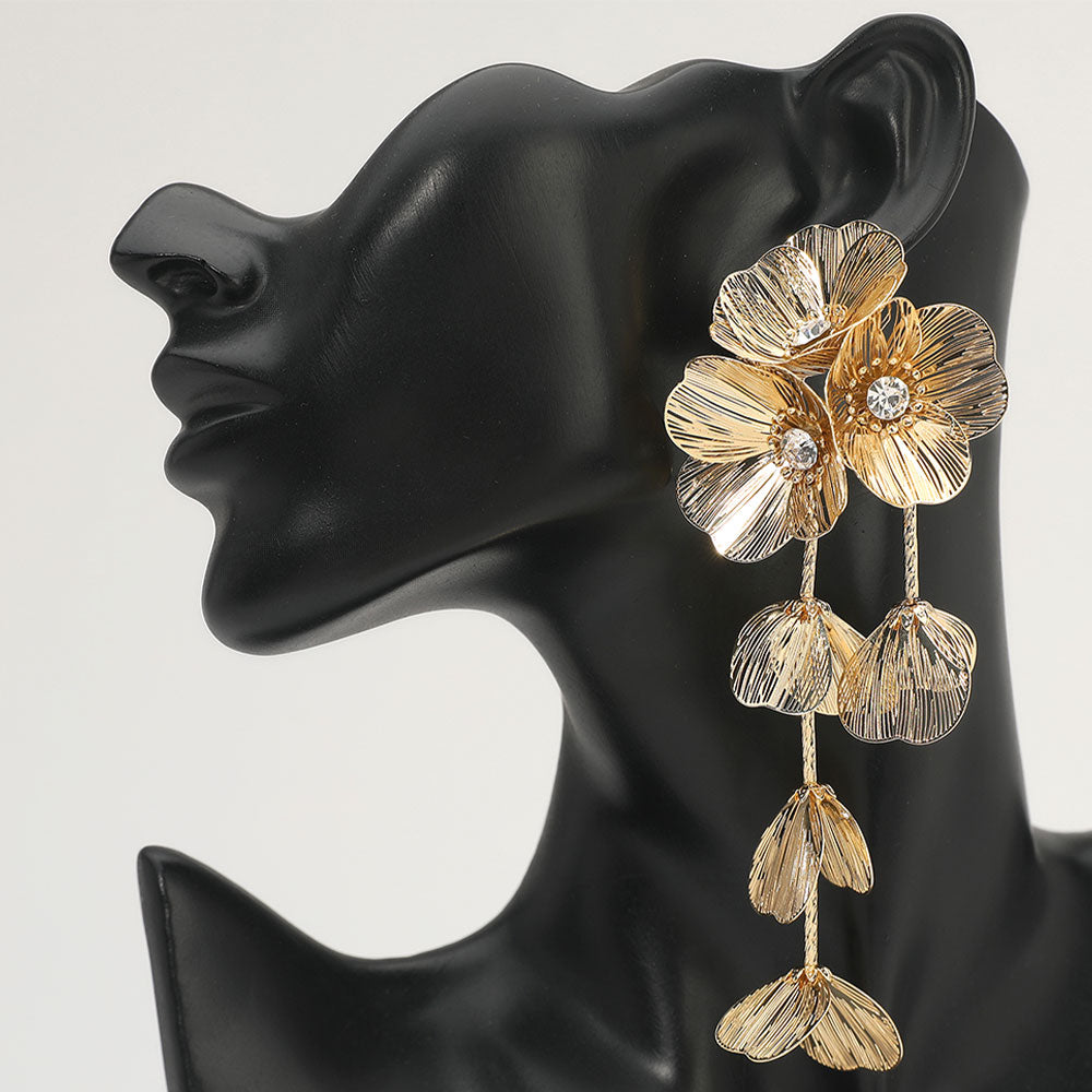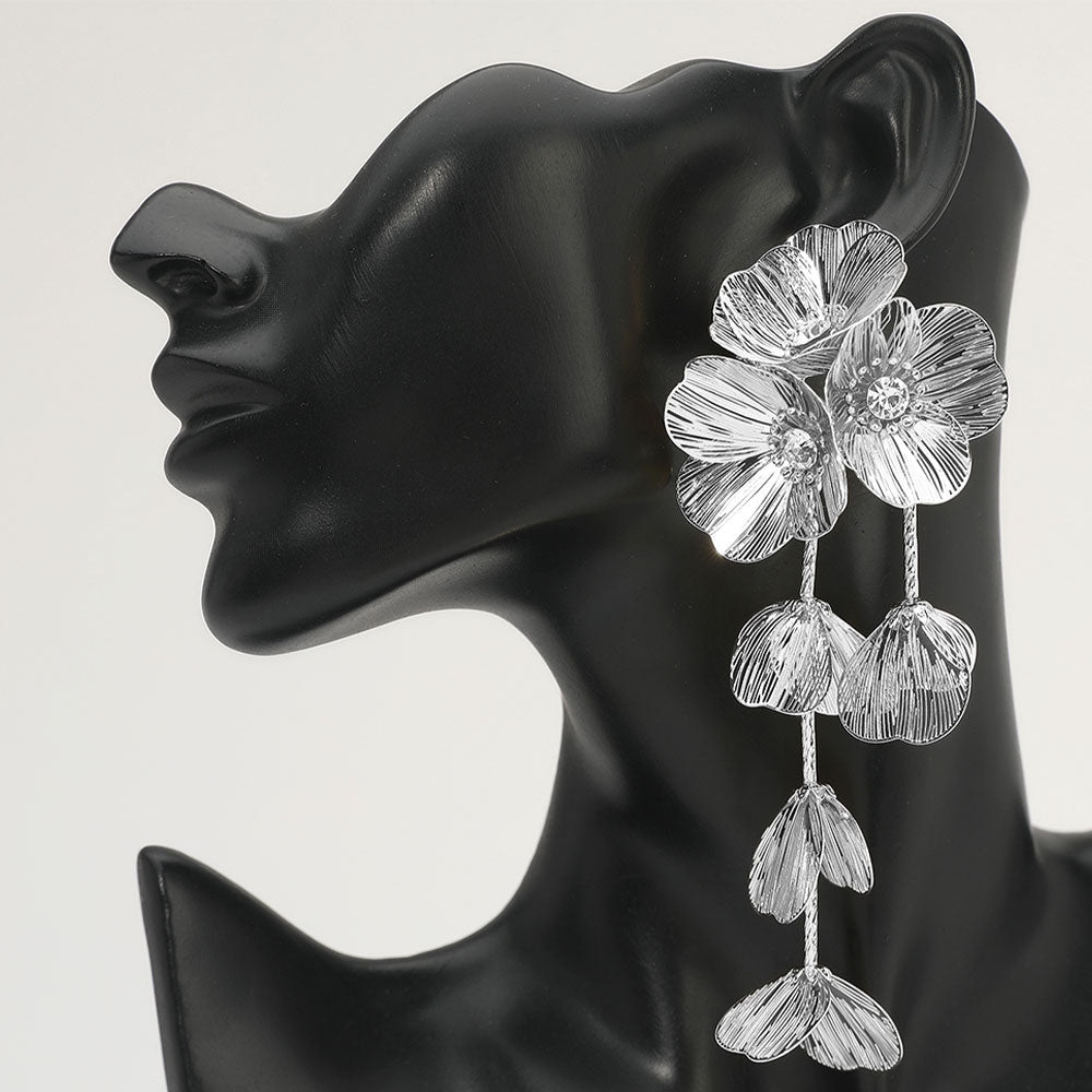 Turn heads with these Statement Floral Dangle Earrings, designed with layered petal detailing for a bold yet elegant look. Perfect for special occasions or chic evenings out, these earrings exude sophistication and artistic flair, adding a graceful finish to any ensemble. Key Features • Extra Long FIVE INCH Drop!! • Ea