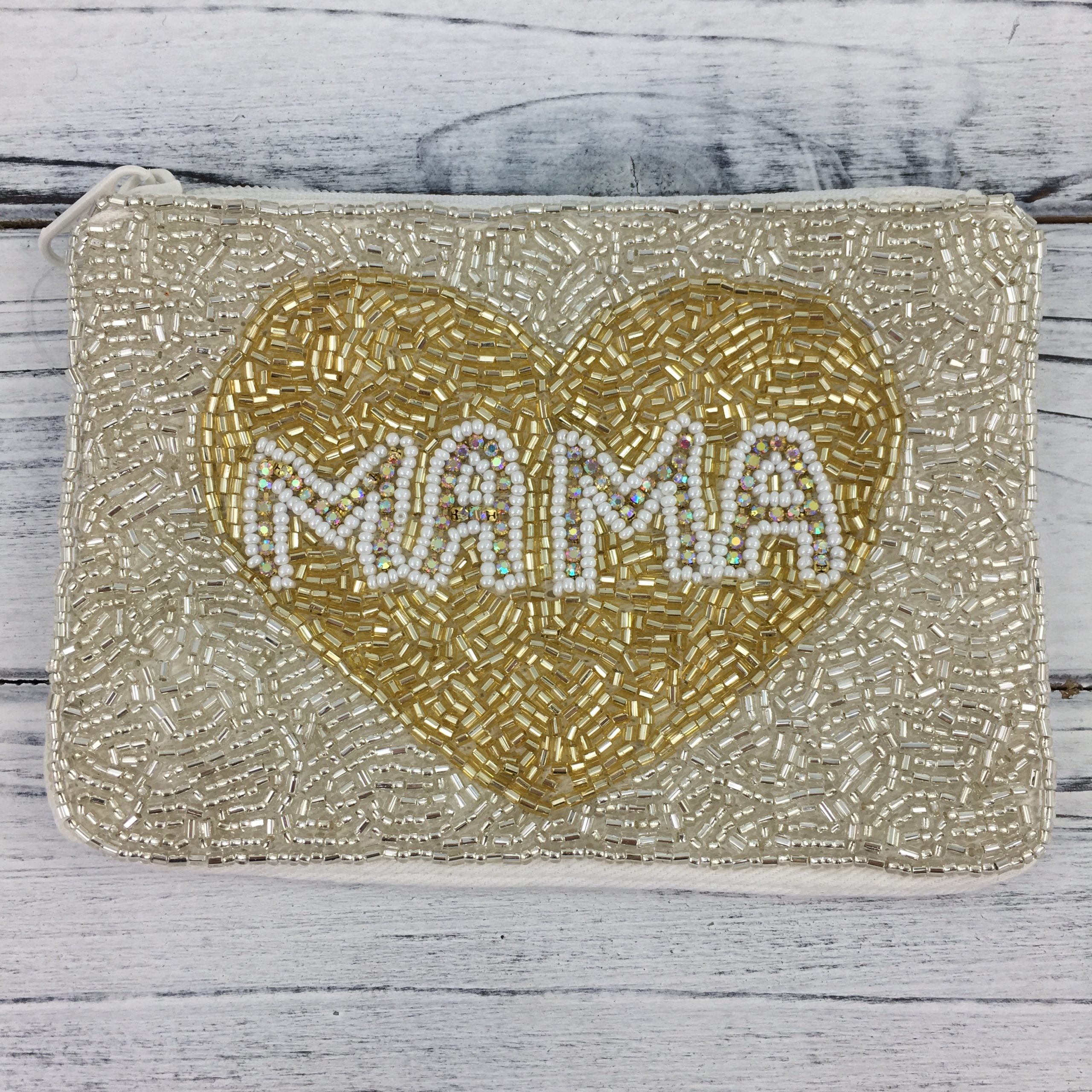 MAMA LOVE Gold Beaded Coin Storage Pouch