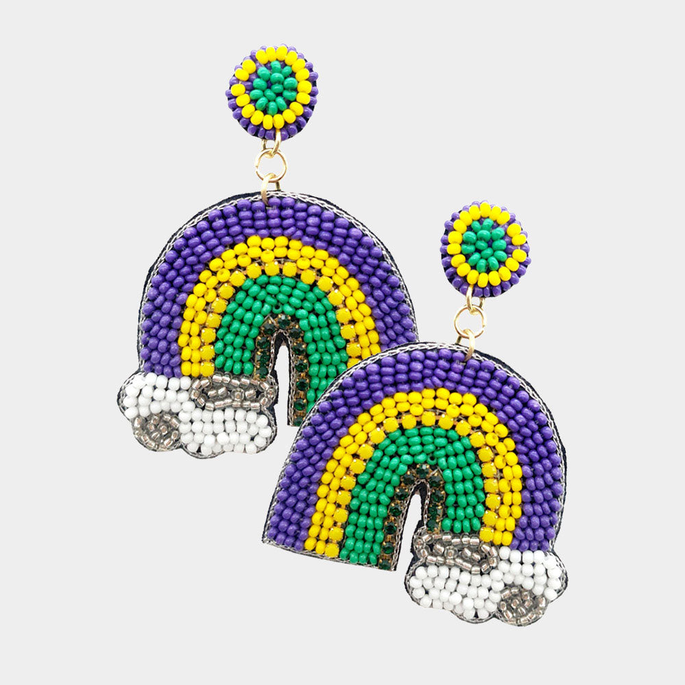 Mardi Gras Beaded Rainbow Dangle Earrings