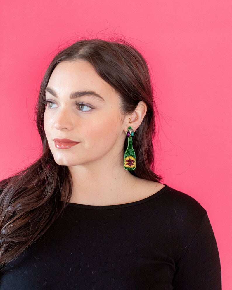 Mardi Gras Beaded Wine Bottle Earrings