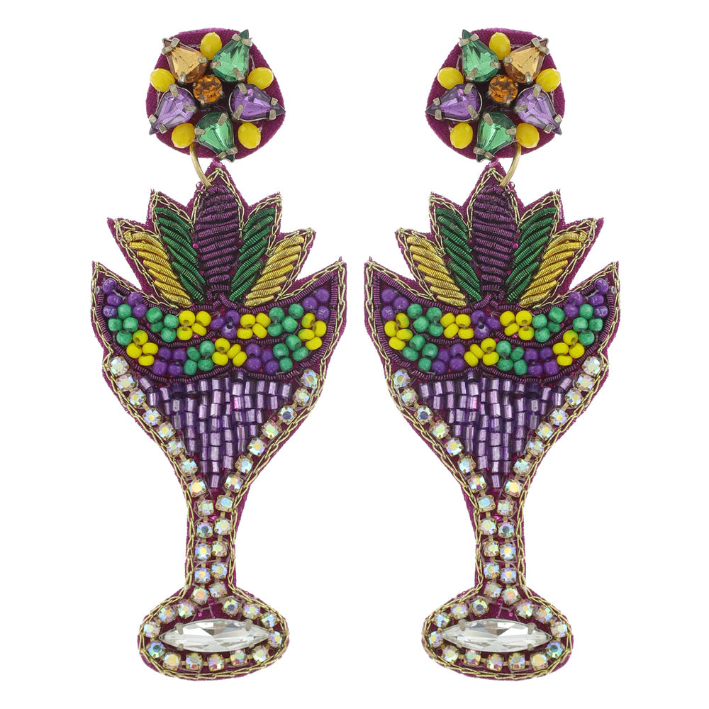Mardi Gras Cocktail Glass Jewel Beaded Earrings