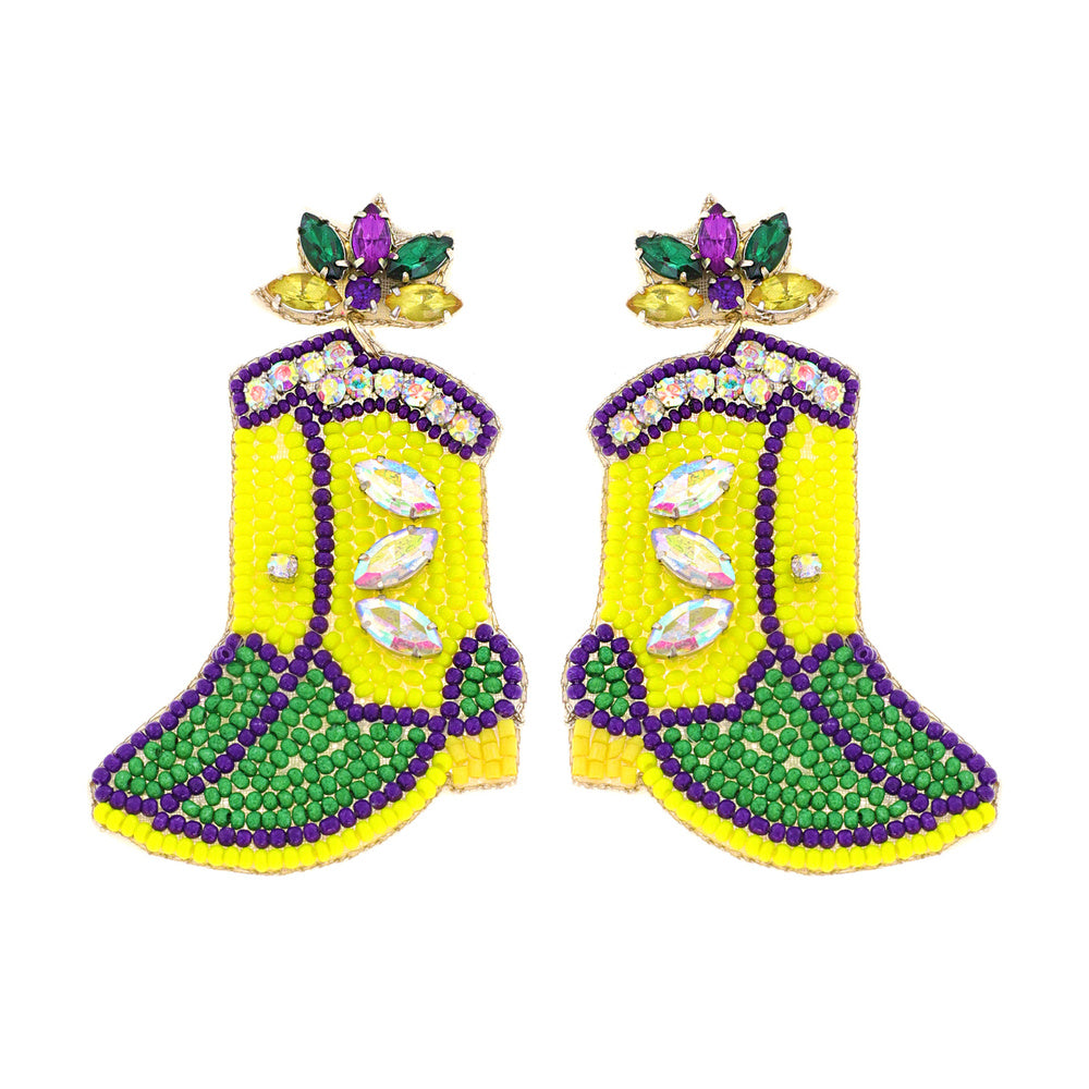 Mardi Gras Jeweled Beaded Western Boots Earrings