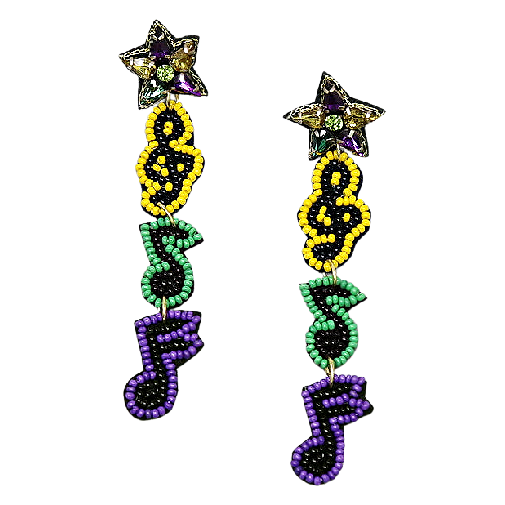 Mardi Gras Music Notes Seed Beaded Earrings