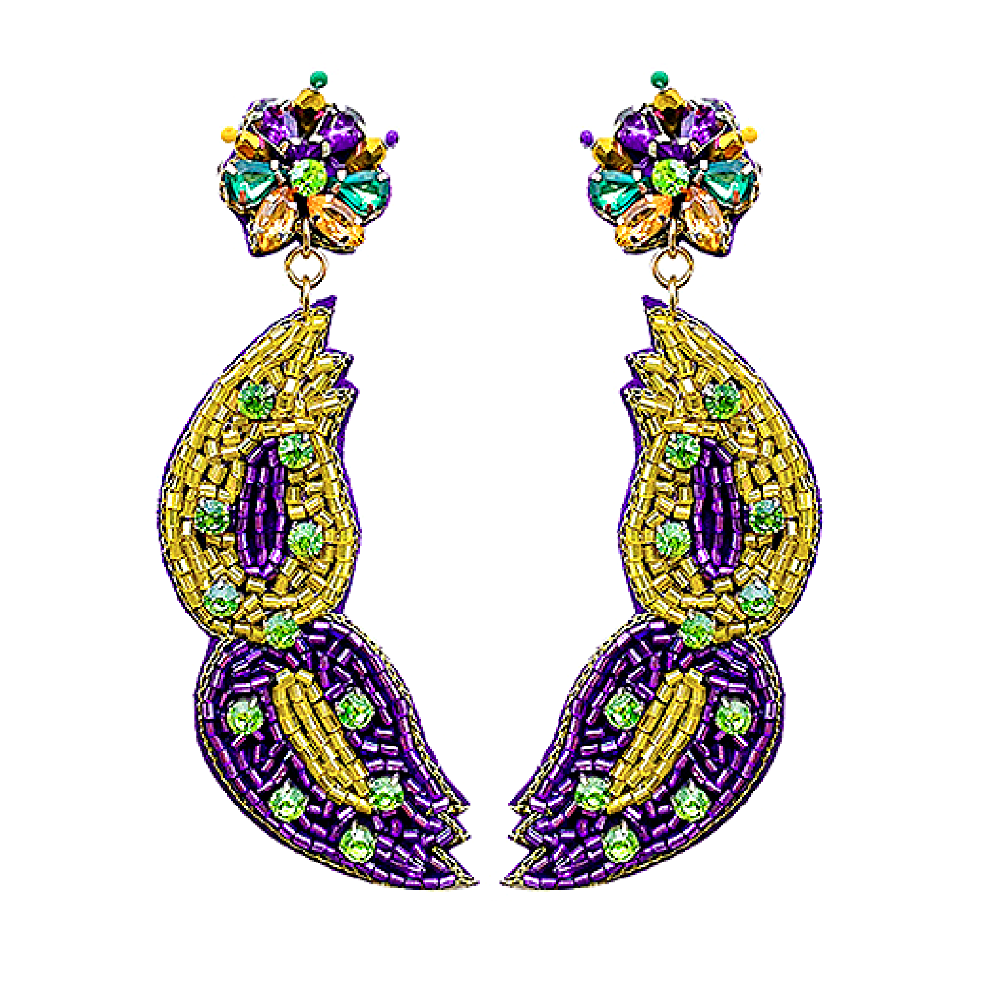 Mardi Gras Party Mask Beaded Crystal Earrings