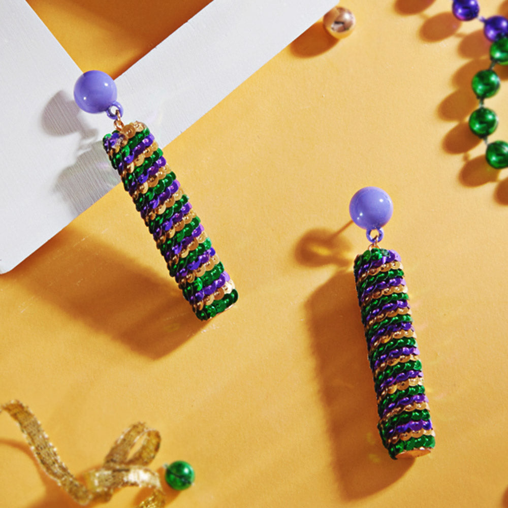 Mardi Gras Wrapped Sequin Dangle Earrings