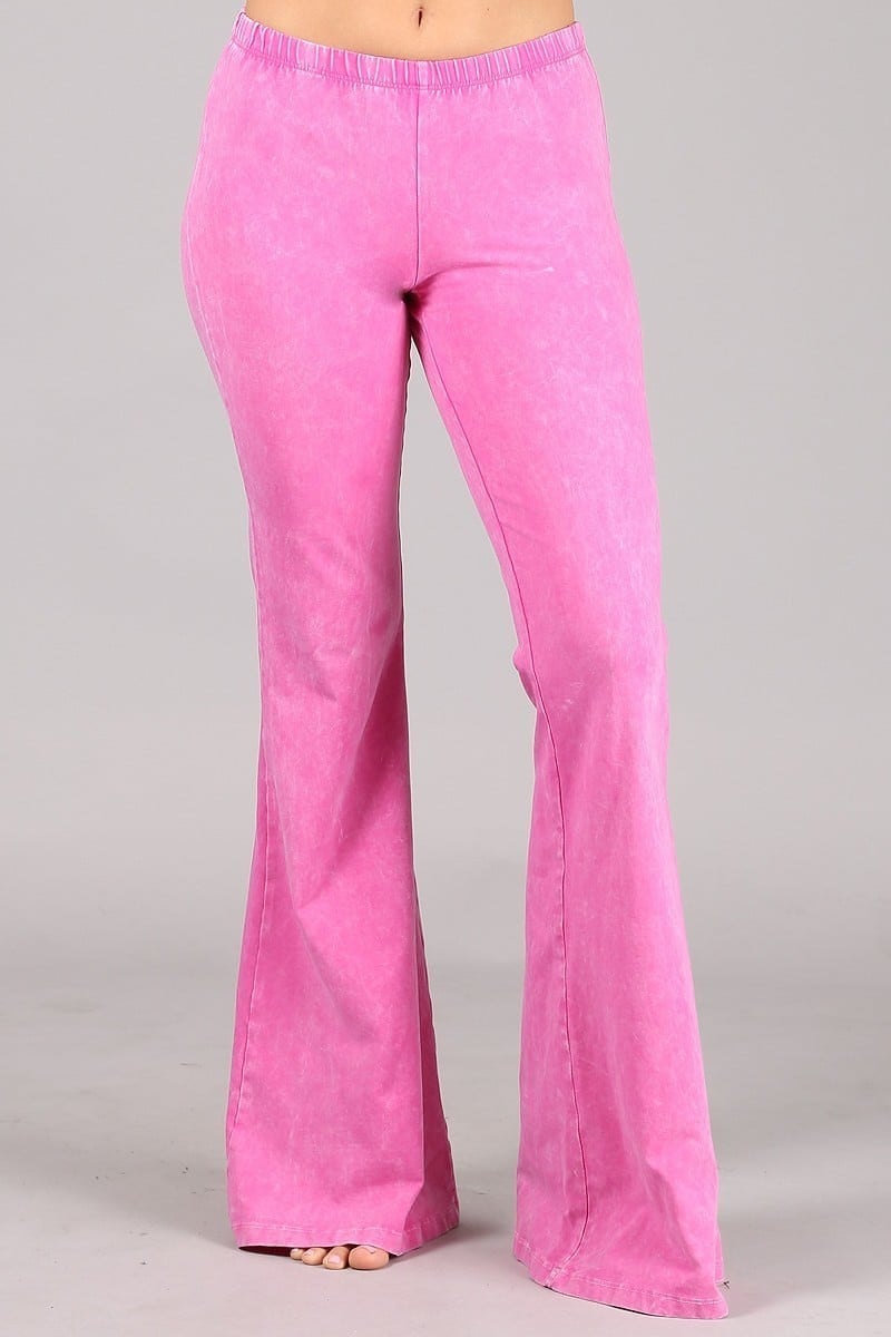 Mineral washed bell bottom pants with great stretch and elastic waist.