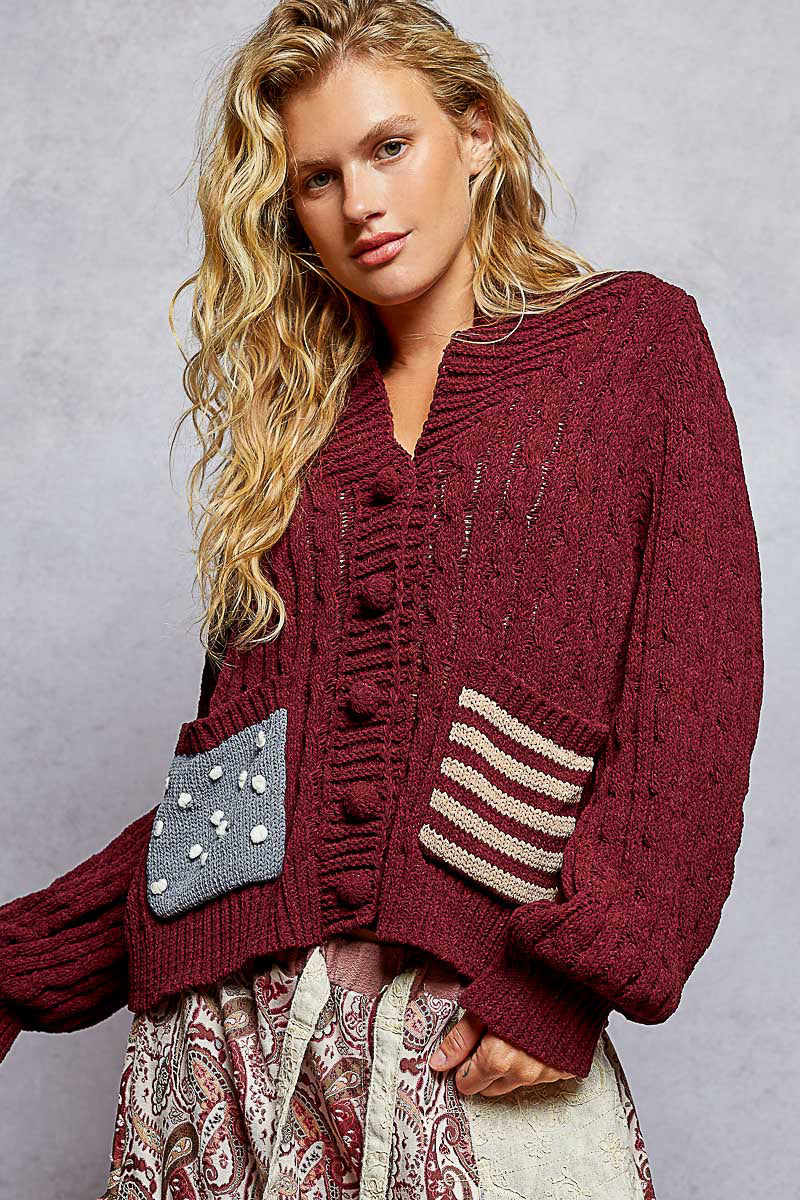 - Style: American flag-inspired chenille cardigan with balloon sleeves