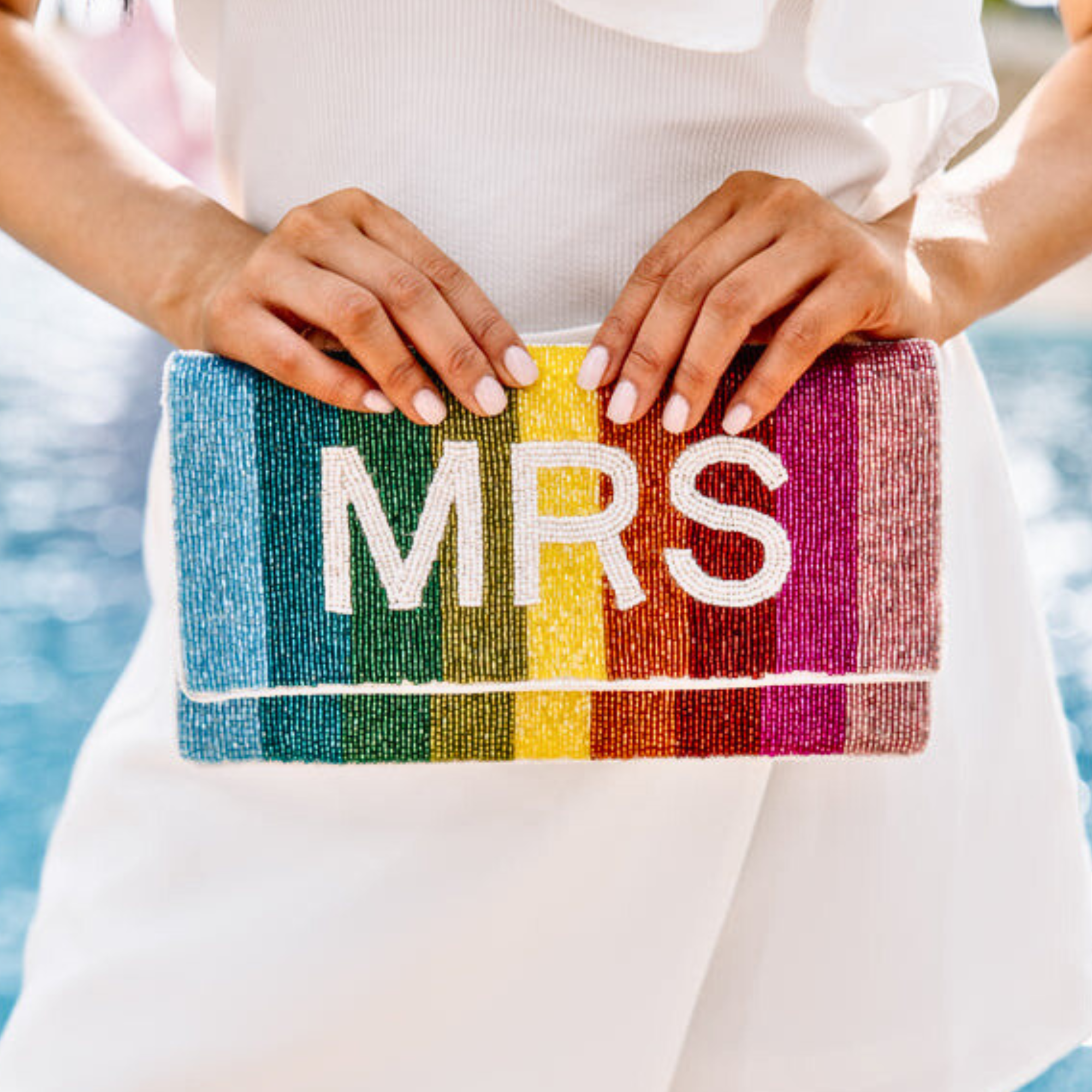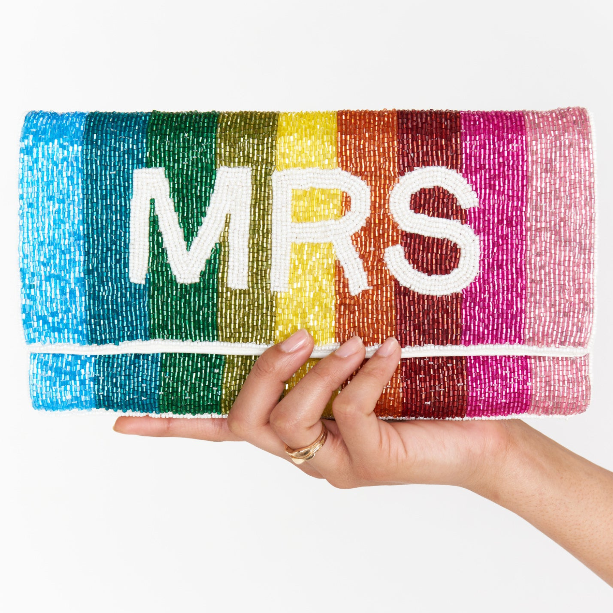 MRS Rainbow Beaded Crossbody Chain Clutch Handbag