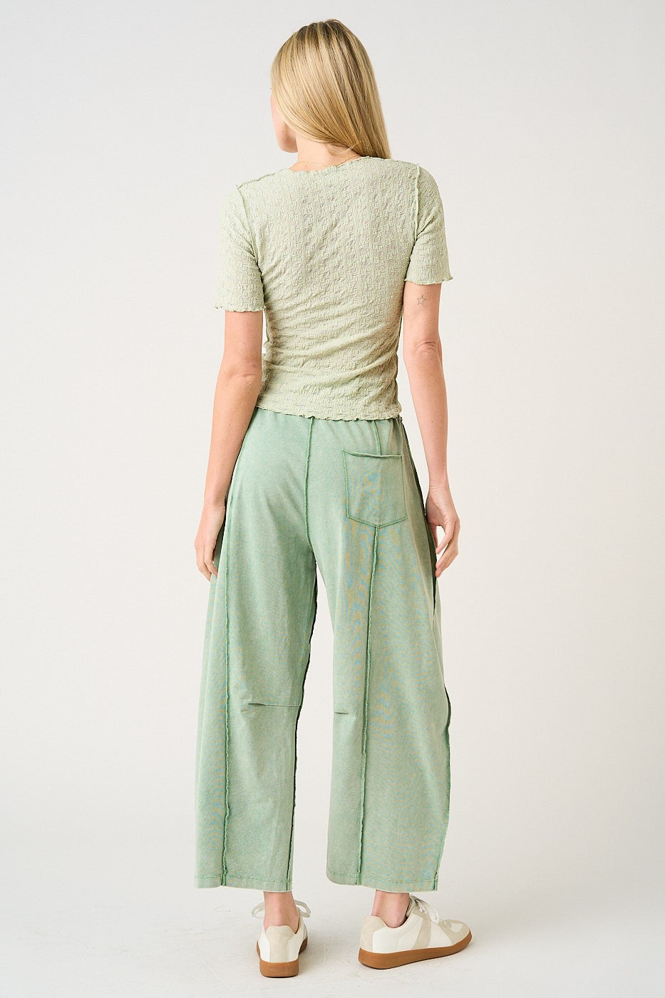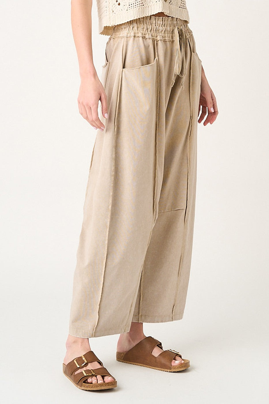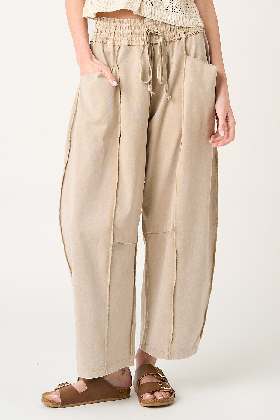 Festival-ready comfort with a little structure and a lot of style ✨ These mineral-washed barrel pants are the kind of “throw on and look cool” piece you’ll wear all spring and summer. Description The Mya Festival Ready Barrel Pants are made from cotton French terry knit fabric with a mineral-washed finish for that