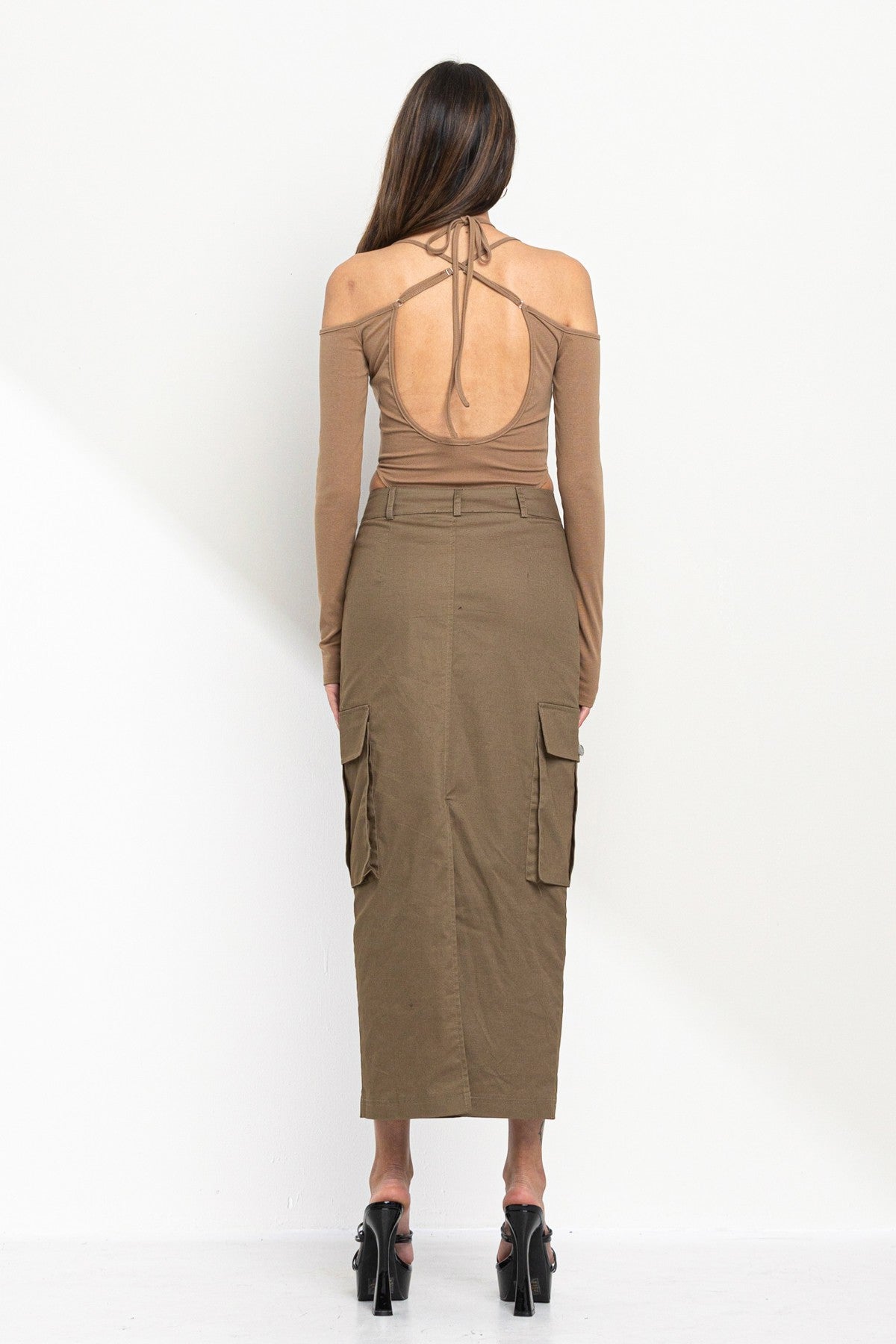 - Strap detail with cold shoulder