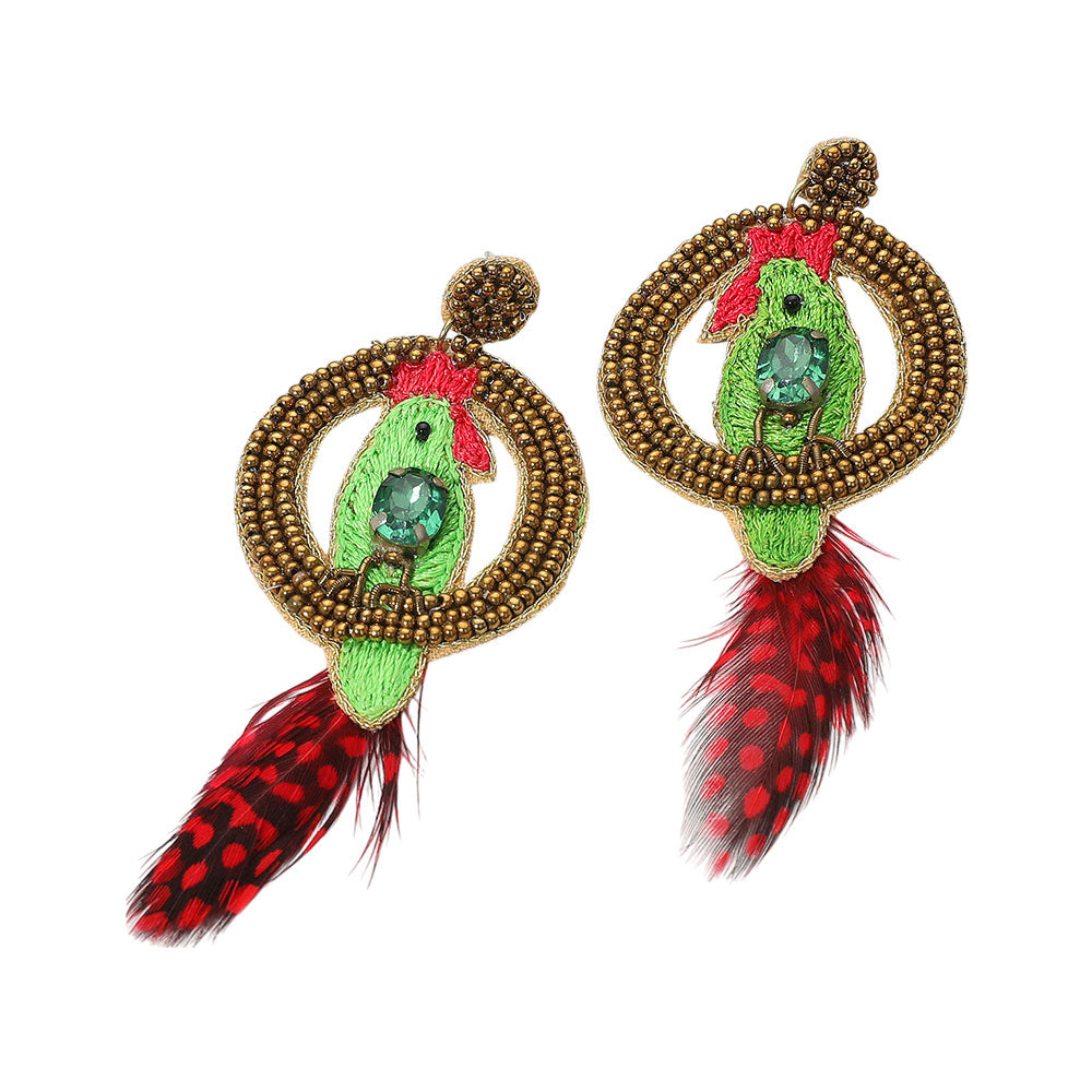 • Size : 3.25" Drop• Post Back• Hypoallergenic• Made In India • Earrings are Lightweight on Ears • Embroidered & Feather Accents